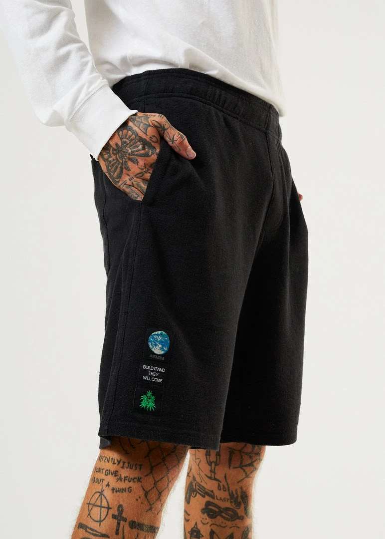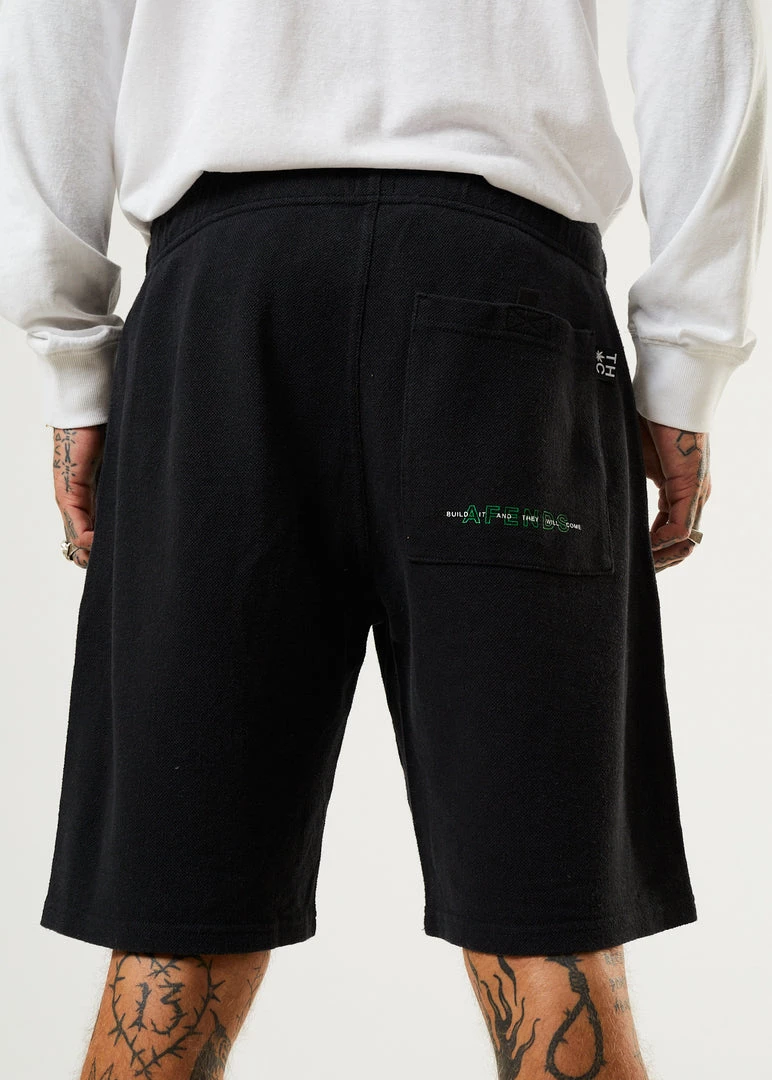 Build it in these elastic waist shorts. Designed in collaboration with George Barnes, this artist series is an ode to dreaming up a new future. These shorts put comfort at the forefront with an elastic waist, relaxed fit and midweight design in eco-friendly and textured hemp and organic cotton pique.