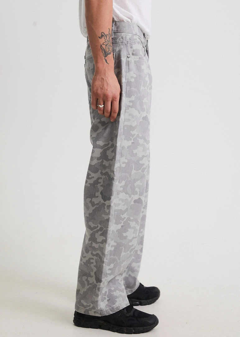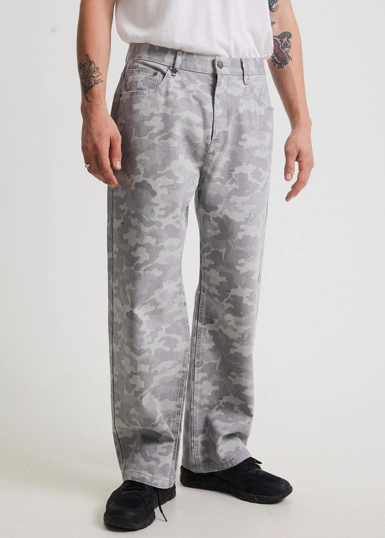Keep your cover in the cadet baggy jeans. Inspired by the iconic vintage baggy fit, these jeans offer a super-wide loose leg. Cut from sustainable organic cotton denim in our muted camo print, these midweight jeans will shake up your staple collection.
