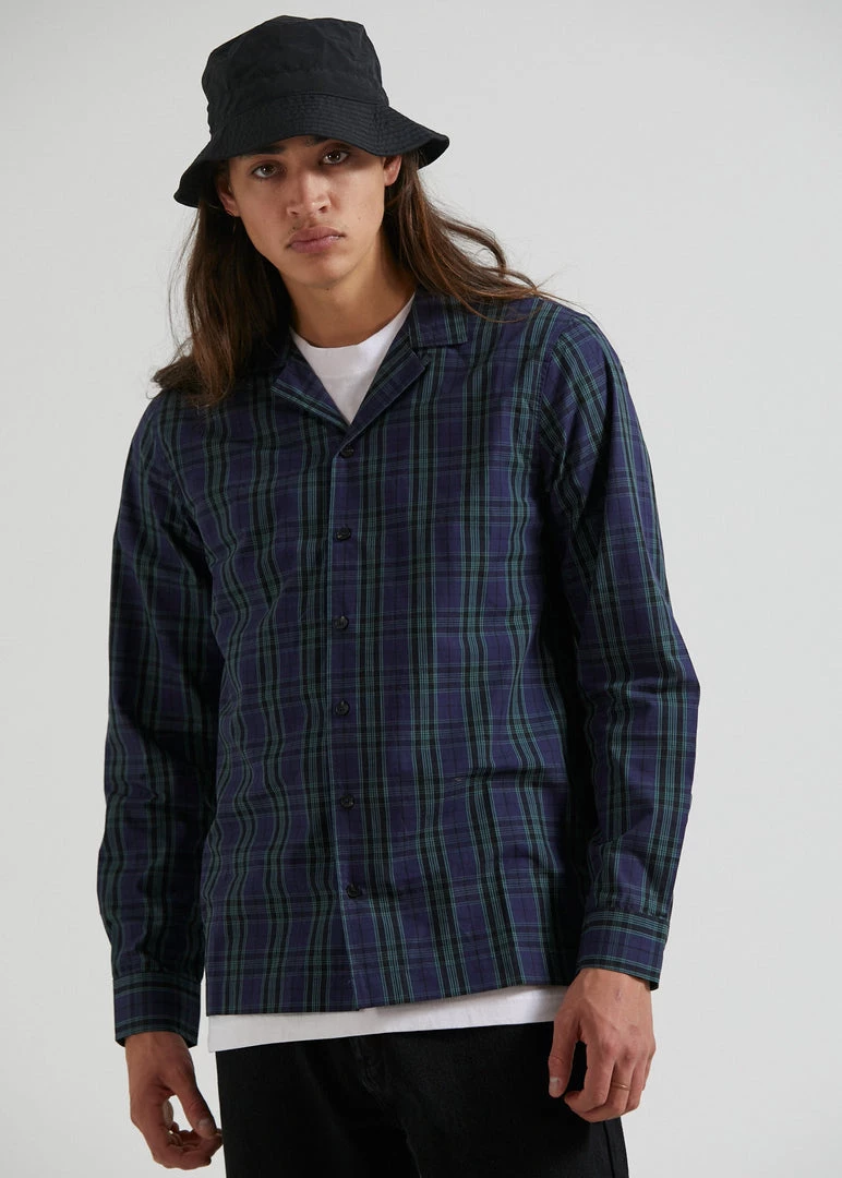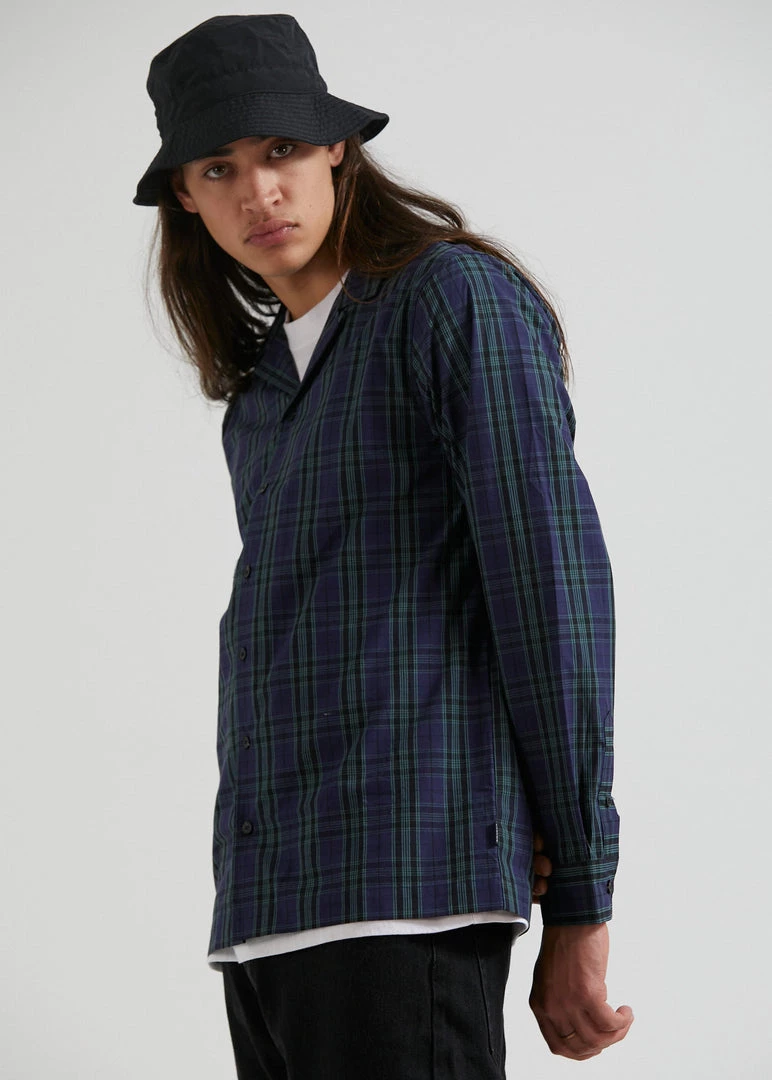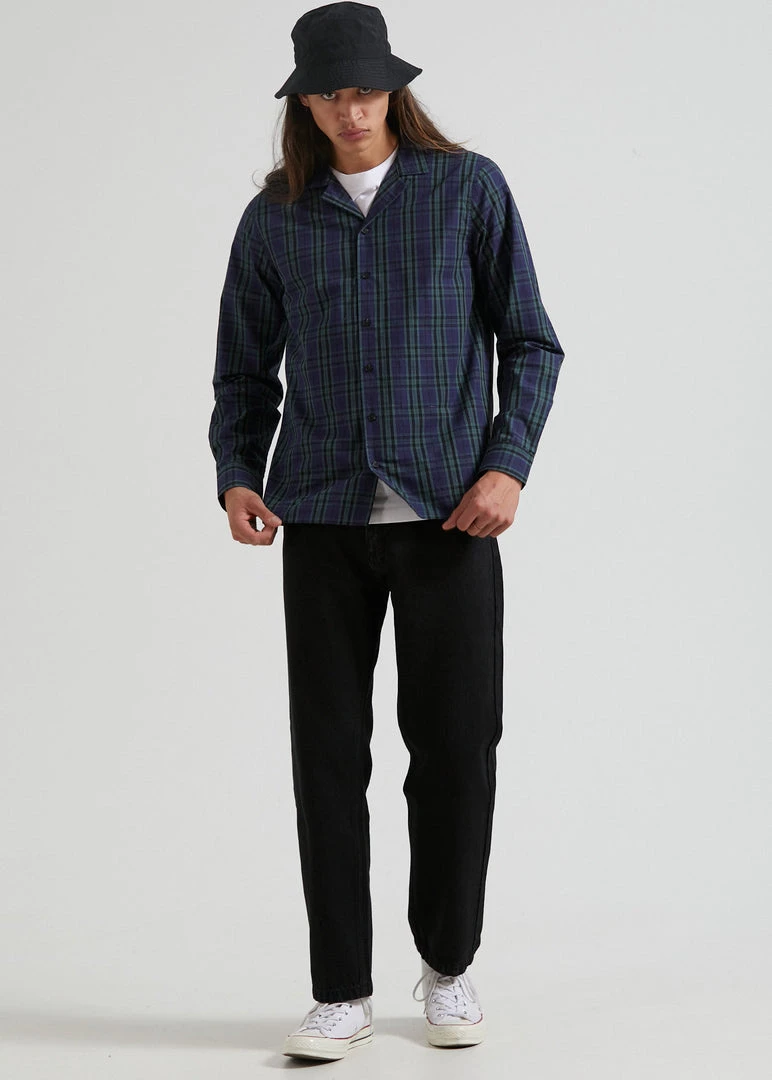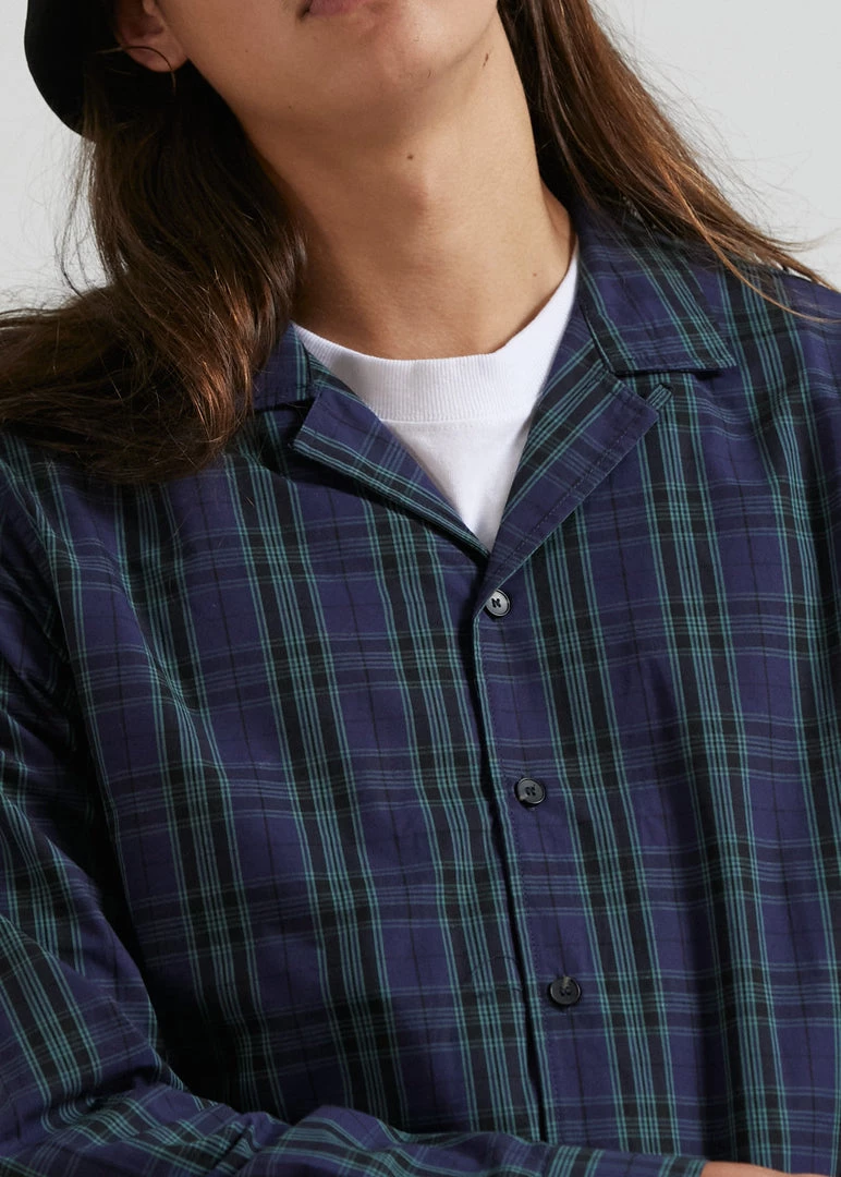 Doomsday ready in this cuban long sleeve shirt. Our eco-friendly organic cotton twill offers a lightweight and relaxed design for transeasonal wear. Featuring a button-up front, cuban collar and contrast check pattern, you can button it up or layer it up with ease.