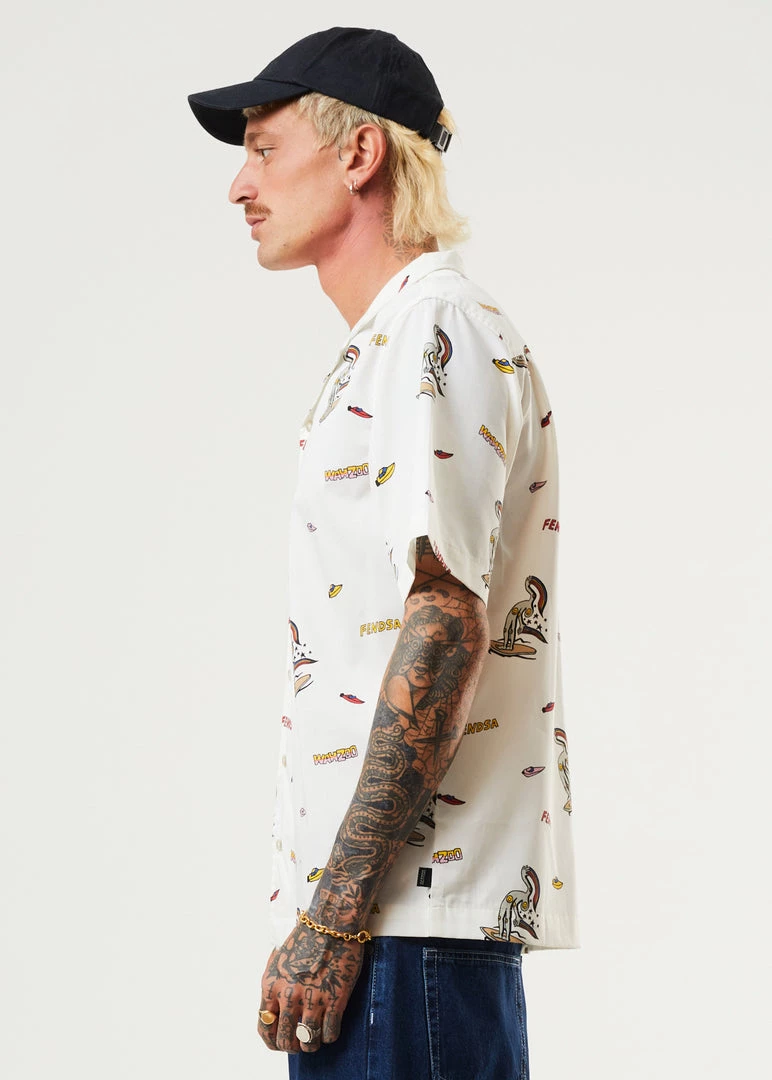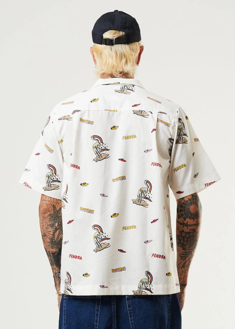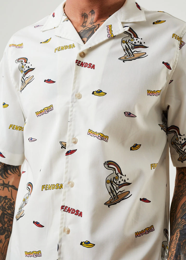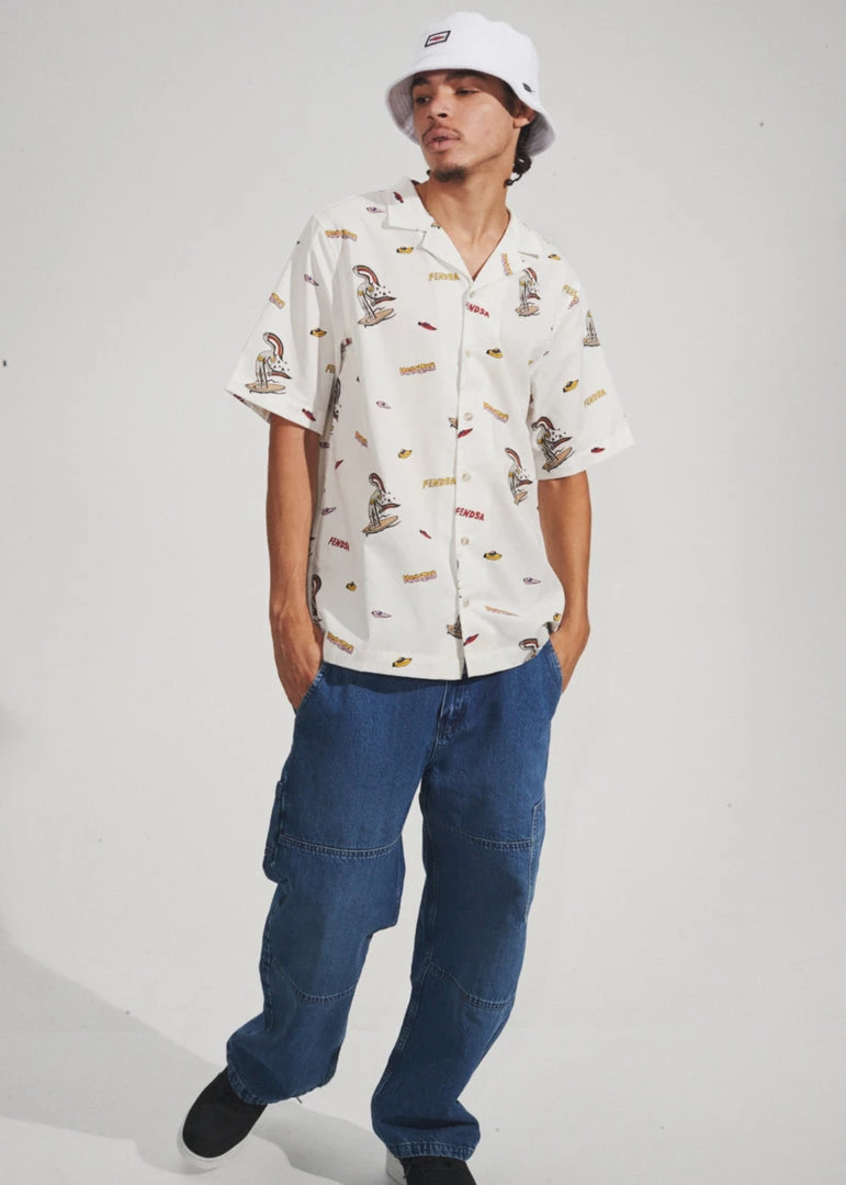 Feel good in the fendsa short sleeve shirt. Created in collaboration with our good mate Brodie Jackson, this lighthearted capsule offers vibrant graphics to brighten up your collection. In eco-friendly recycled polyester, this short sleeve shirt offers a lightweight and soft-hand feel. Featuring a button-up front and cuban collar, you can wear it buttoned up or layer it over your favourite basic.