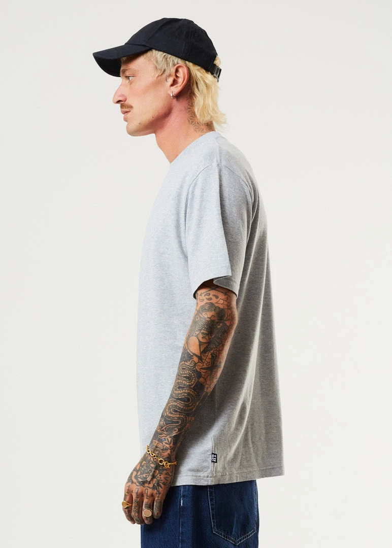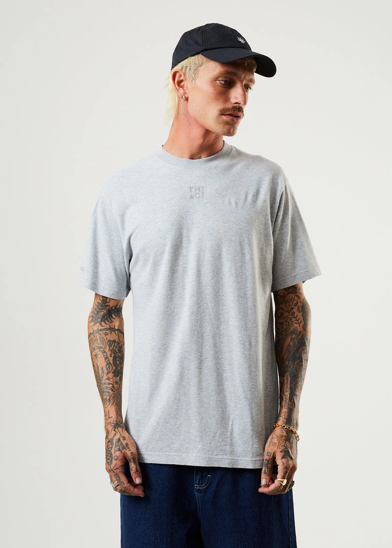 Afends Mens House Arrest – Hemp Retro T-Shirt – Shadow Grey Marle Clothing