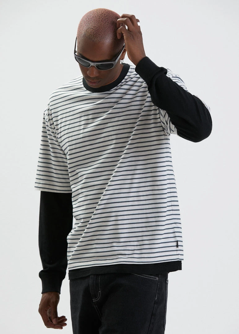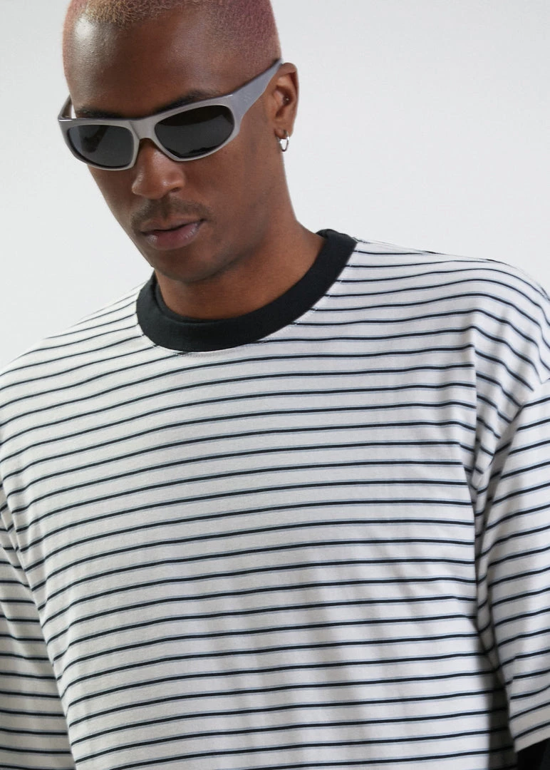 Add some stripes to your oversized tee lineup. This tee offers a midweight design in eco-friendly recycled cotton with our custom contrast stripe. Our signature oversized fit is as soft and slouchy as any good tee should be. Pair it with anything and wear it often.