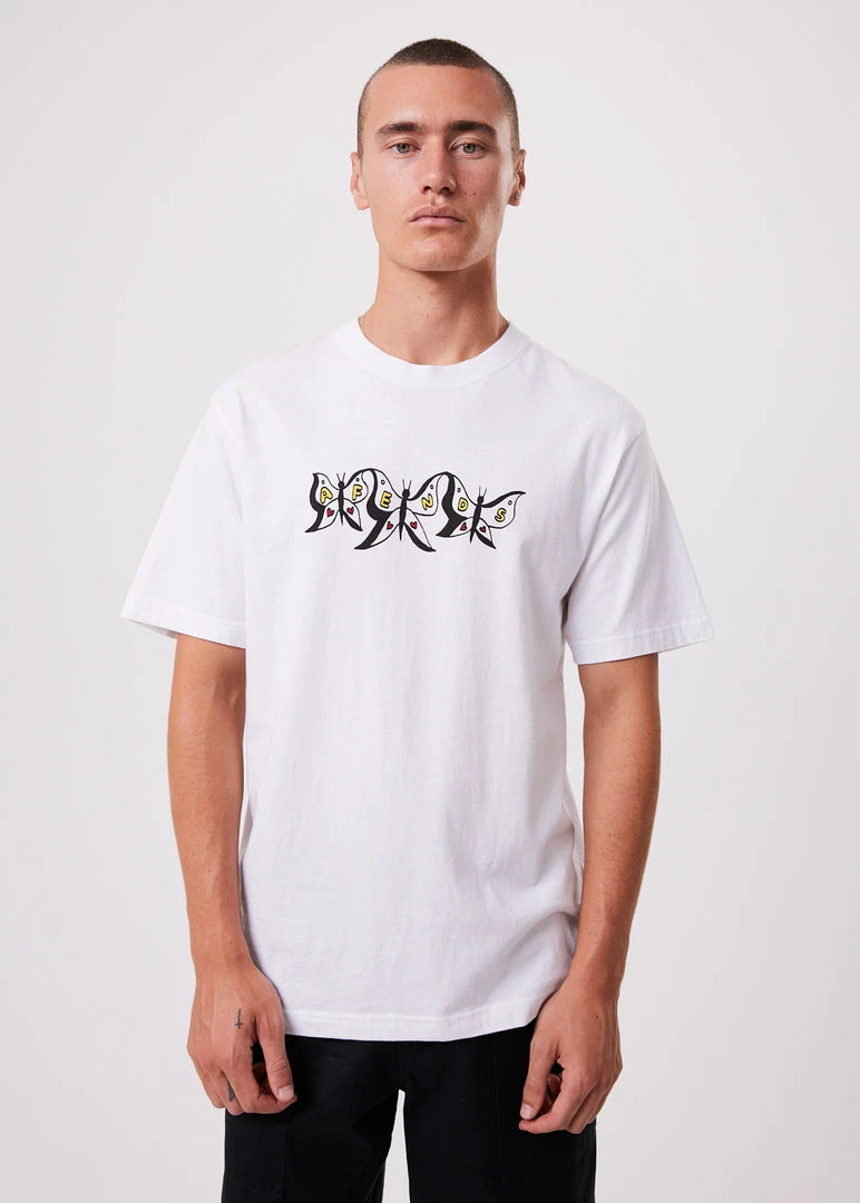 Afends Mens Mushy – Recycled Retro Graphic T-Shirt – White Clothing