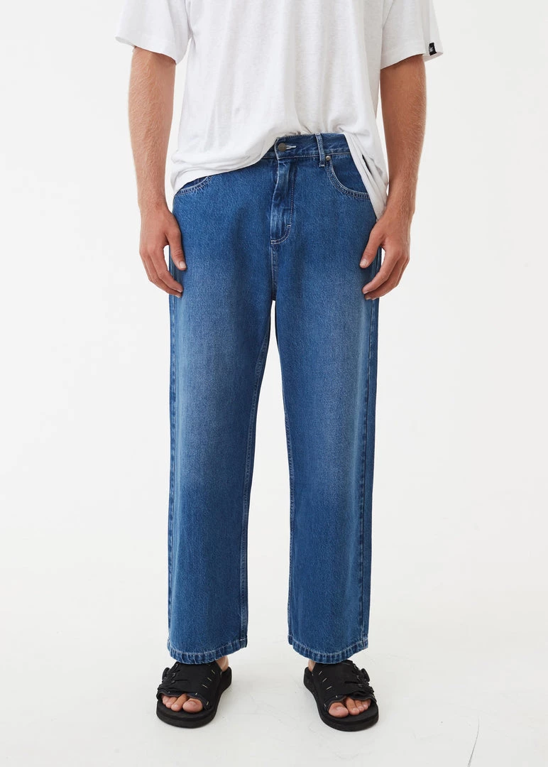 These baggy jeans are the ultimate throwback pair. Inspired by jeans iconic to the 90s, these jeans offer a super-wide baggy fit. Cut from the innovative blend of organic cotton and hemp denim in our signature vintage wash, these midweight and sustainable jeans will serve you well from couch to concrete.