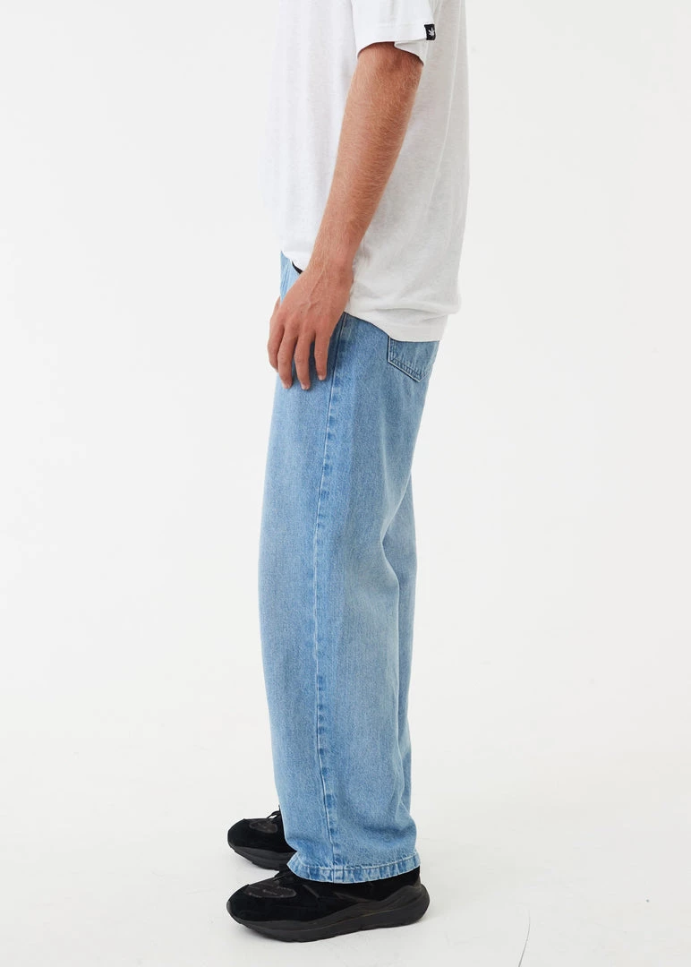 These baggy jeans are the ultimate throwback pair. Inspired by jeans iconic to the 90s, these jeans offer a super-wide baggy fit. Cut from the innovative blend of organic cotton and hemp denim in our signature vintage wash, these midweight and sustainable jeans will serve you well from couch to concrete.