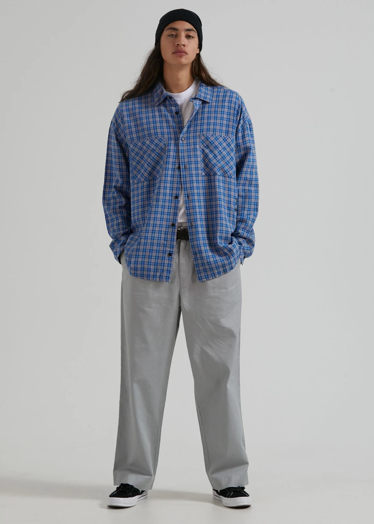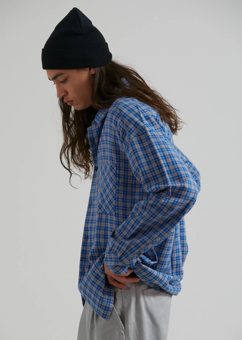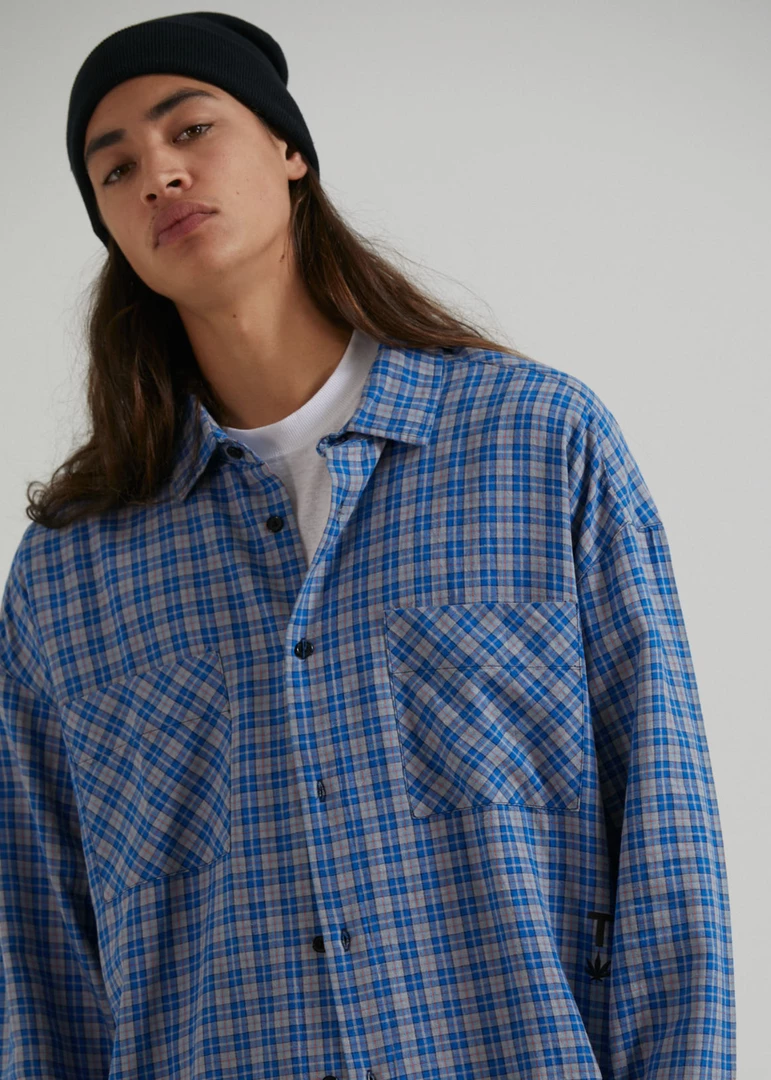 This long sleeve shirt checks all the boxes. In the all-natural blend of hemp and tencel in an electric blue check print, this shirt is super lightweight and breathable to carry you through the seasons with ease. Our long sleeve shirt design offers a relaxed fit, button-up front and THC branding to layer up or button up.