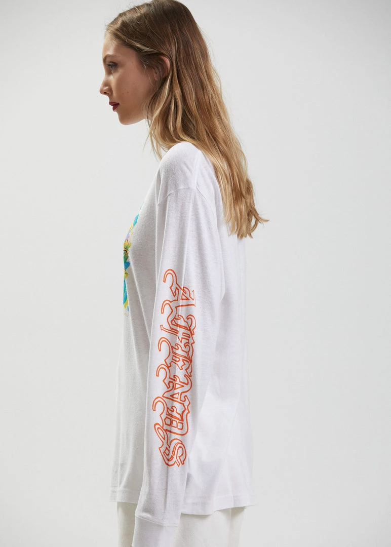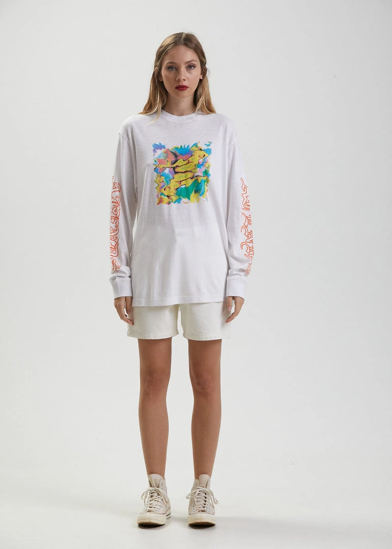 Because everyone loves a long sleeve graphic tee. Welcome a pop of colour into your everyday lineup with our eco-friendly hemp and organic cotton jersey tee designed in collaboration with our good mate Nirvana Selwood. Our signature long sleeve tee offers a soft and slouchy design with long sleeves to layer up.