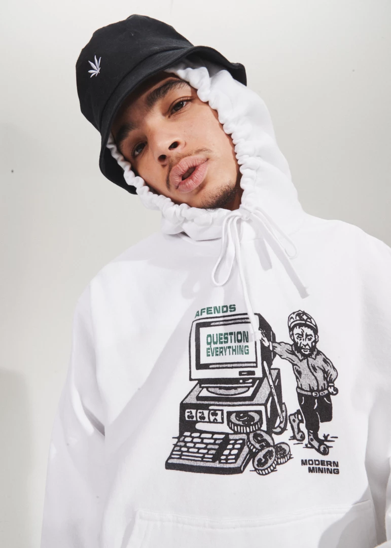 Question everything in this graphic hoodie. Created in collaboration with Pat Rogasch, this artist series explores the weird and wild world of cryptocurrencies. In eco-friendly organic cotton brushed fleece, this hoodie offers a soft-hand feel, heavyweight design and slouchy fit with a pull on hood and oversized front pocket.