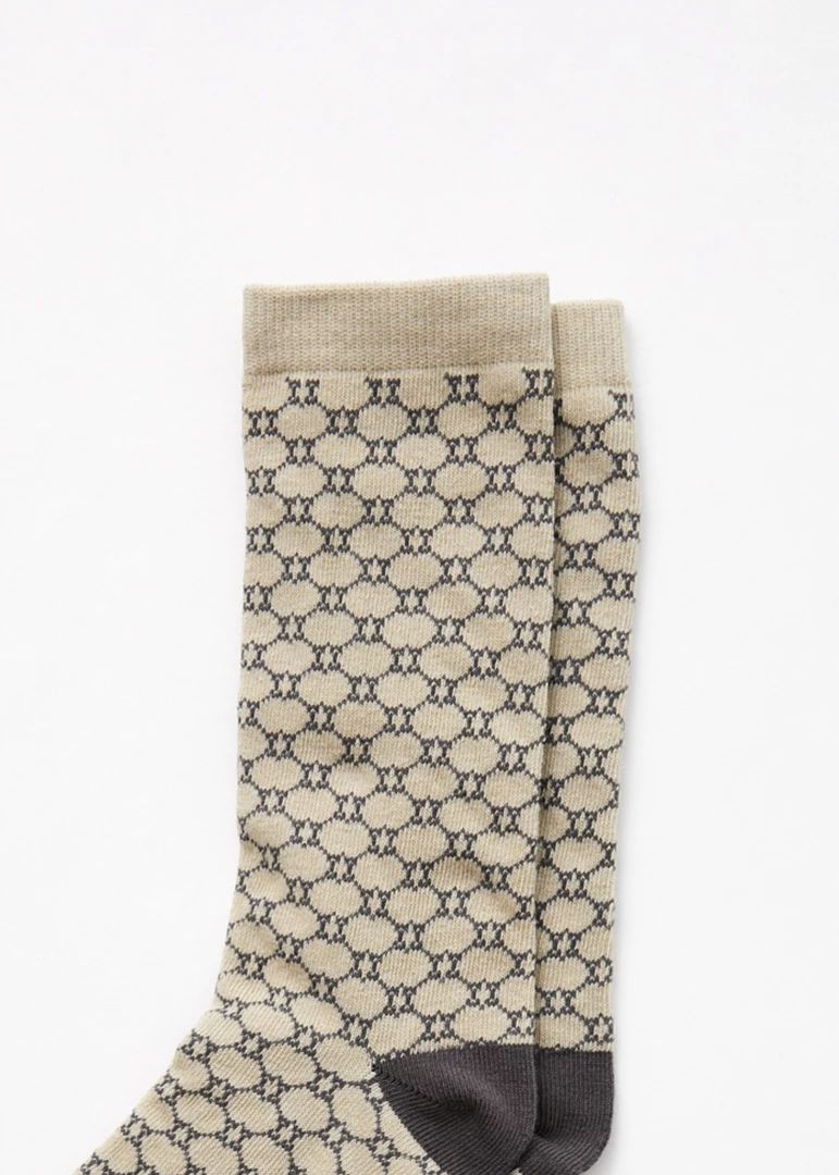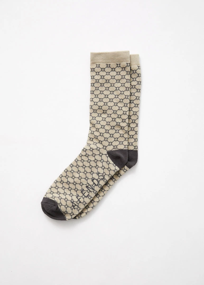 Elevate your streetwear style with these crew socks. Crafted from eco-friendly recycled cotton, these socks offer cushioning for comfort and added stretch with a monogram print to pair back with our spray collection.