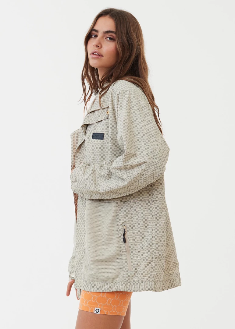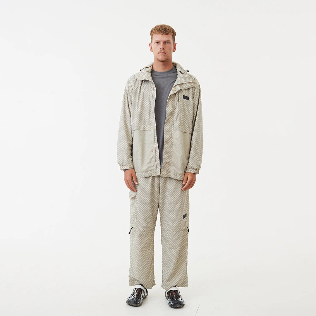 Decked out with all the bells and whistles, this jacket features a zip-up design with press stud closure, hood with adjustable toggle, dual side pockets and mesh detailing. With an all-over monogram print, you can pair it with the matching spray pants to complete the co-ord look.