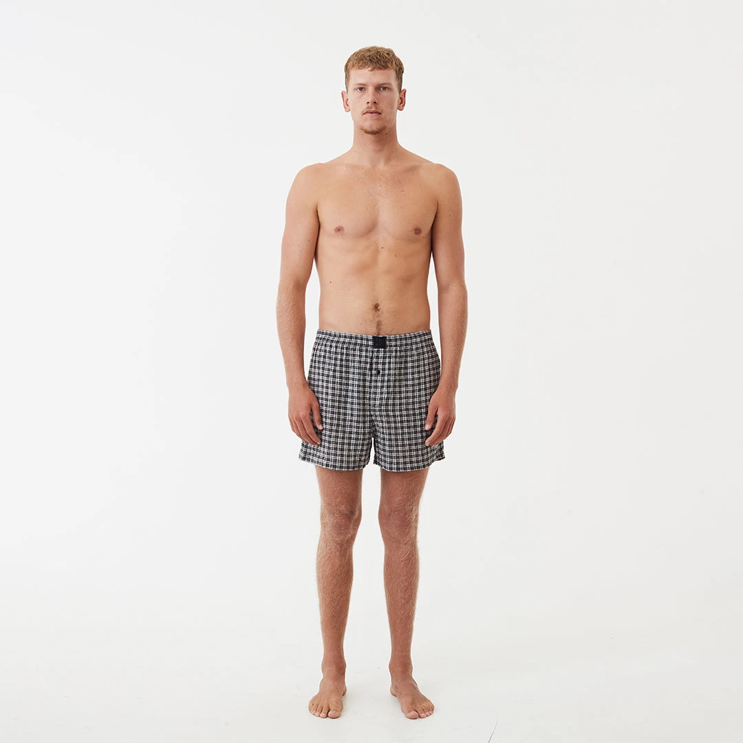 Checking all the boxers. Crafted from eco-friendly hemp and tencel, they offer a lightweight, relaxed fitting and breathable design. Featuring an elastic waist and contrast plaid pattern, you’ll find yourself reaching for them time and time again.