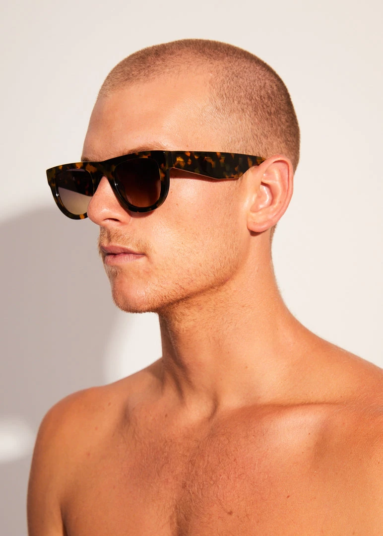 Cali Kush offers a classic, bold and flat top brown shell frame with UV resistant grey/bronze lenses that you will reach for everyday. Handcrafted in Italy from highly durable Mazzucchelli M49 Bio-Acetate, these sunglasses are leading the way in sustainable eyewear.