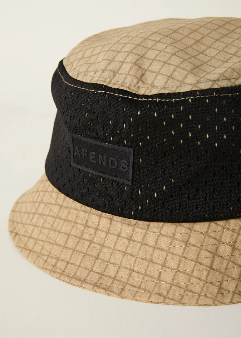 Checkmate in this bucket hat. In recycled check nylon taslon, this hat offers a super lightweight and innovative design with the planet in mind. Our bucket has a soft and structured design with a small brim and mesh detail to pair back with the matching spray set.