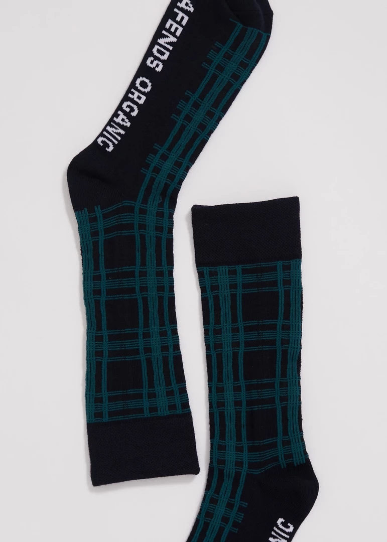 Doomsday ready in these crew socks. Our eco organic cotton socks offer enough stretch and cushioning for all day comfort with our custom plaid print.