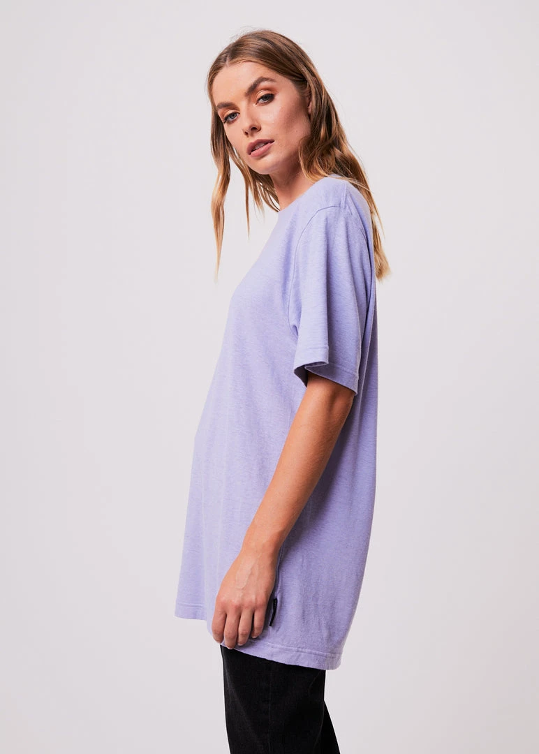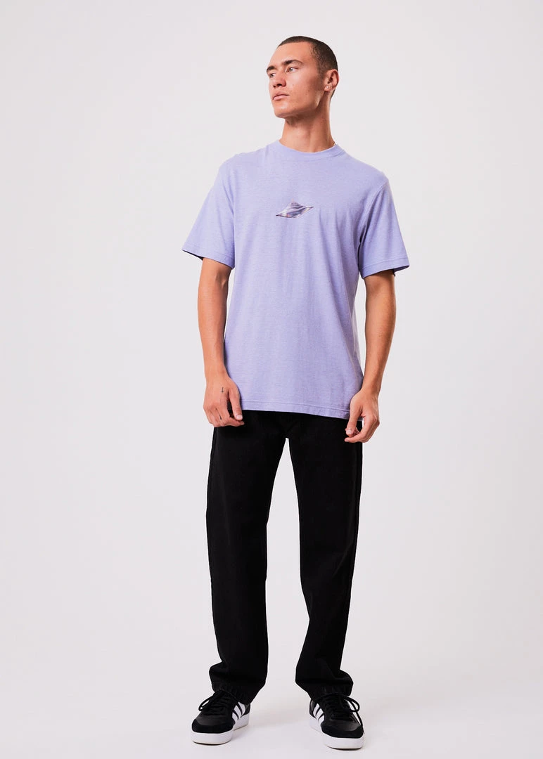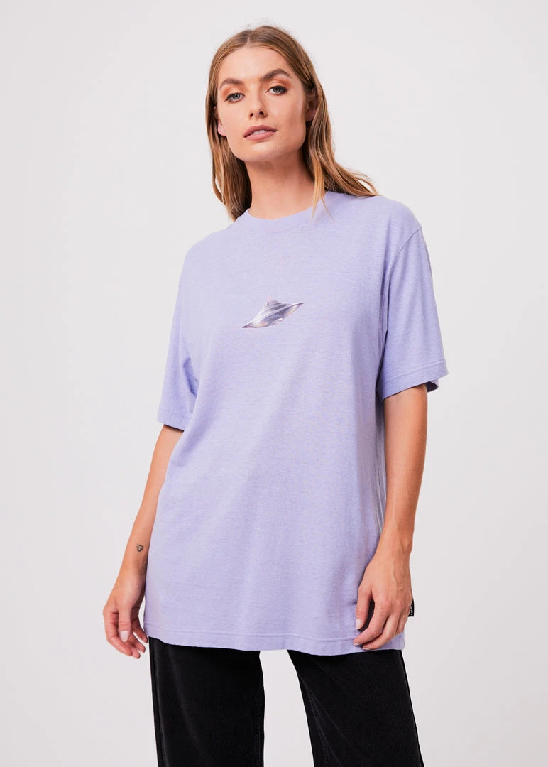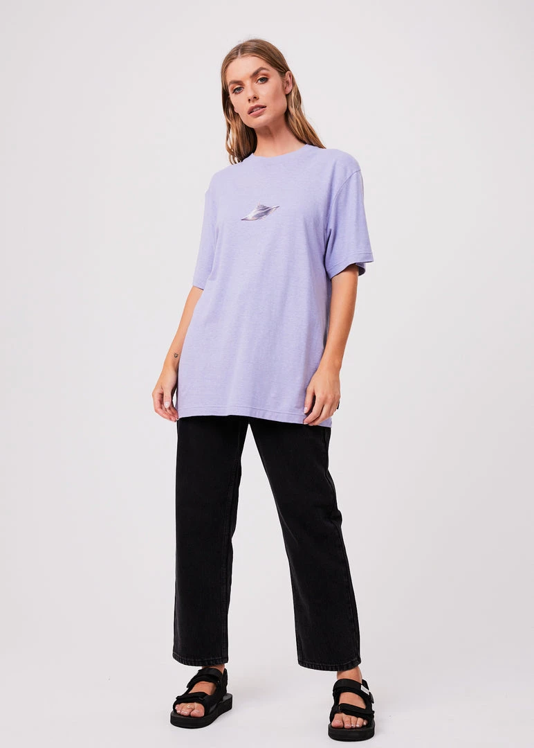 In eco-friendly hemp and organic cotton jersey, this retro tee offers a relaxed and boxy fit for everyday wear. Designed in collaboration with Nirvana Selwood, it features subtle cosmic graphics. The future is now if you choose to believe.