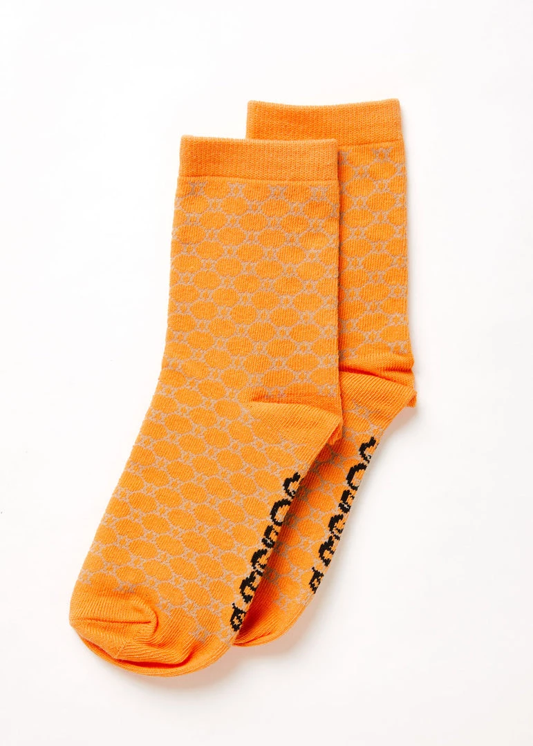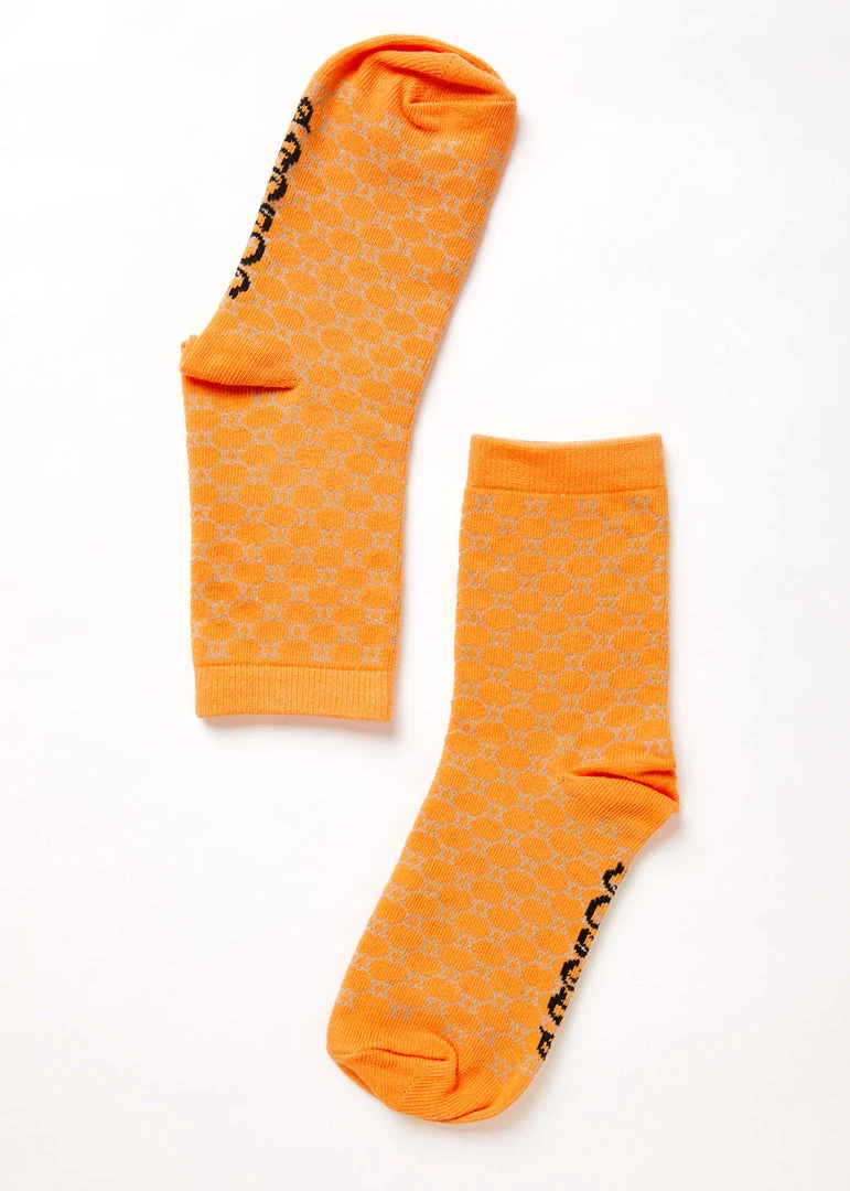 Sporty meets streetwear in these crew socks. Crafted from eco-friendly recycled cotton, these socks offer cushioning for comfort and added stretch with a monogram print and pop of colour to pair back with the range.