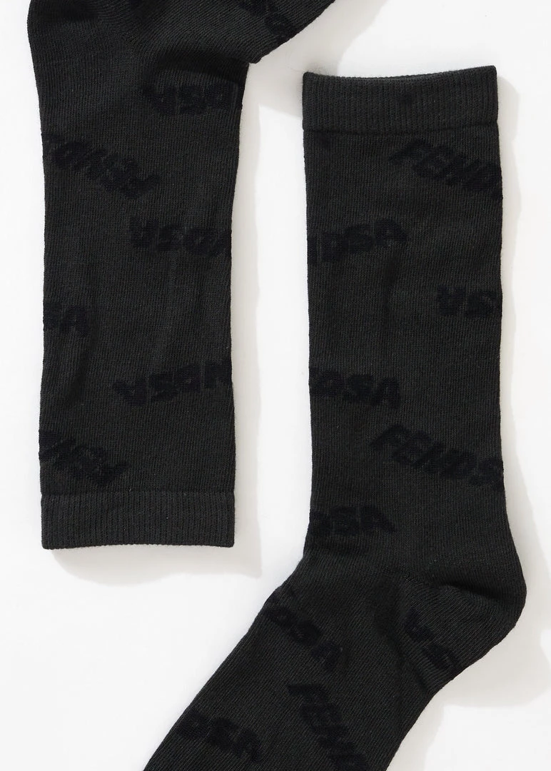 Feeling naughty in these crew socks. Crafted from eco-friendly recycled cotton, these socks offer tonal printed graphics, just enough stretch and cushioning for all day comfort.