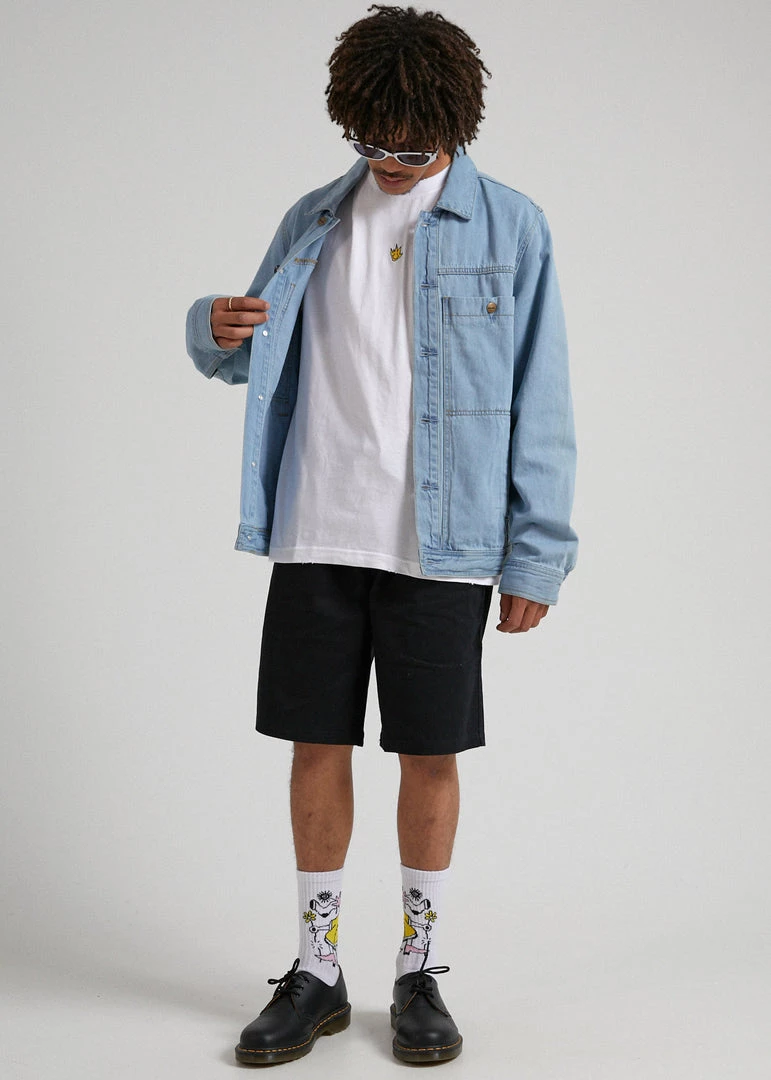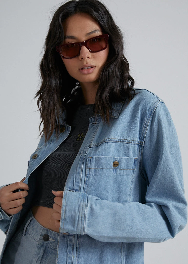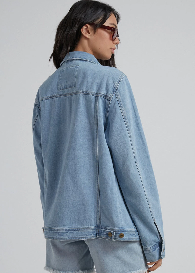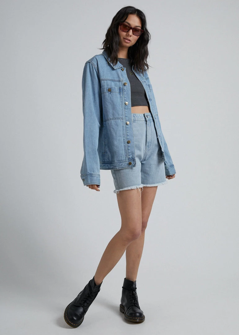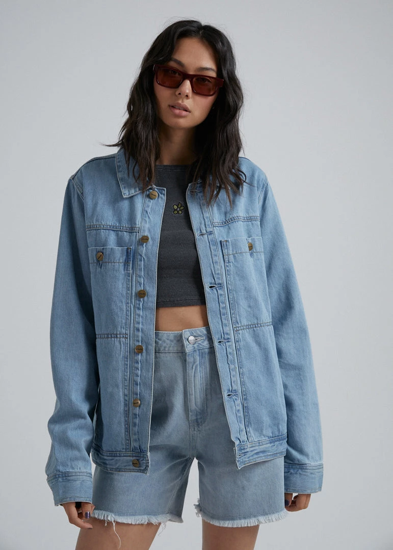 Our denim jacket is made with a sense of versatility that is a vibe for both our chicks as an oversized fit and dudes for a regular fit. Featuring a button-up front with all the pockets, brushed brass hardware and contrast double stitching, this will fast become your go-to jacket that you can layer over everything year-round.