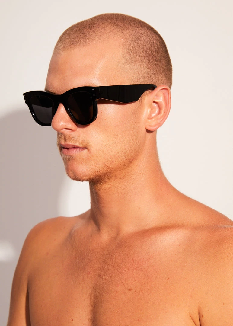Your everyday go-to sunglasses. Premium OG offers a versatile, classic and rounded gloss black frame with UV resistant black lenses catering to all face shapes. Handcrafted in Italy from highly durable Mazzucchelli M49 Bio-Acetate, these sunglasses are leading the way in sustainable eyewear.