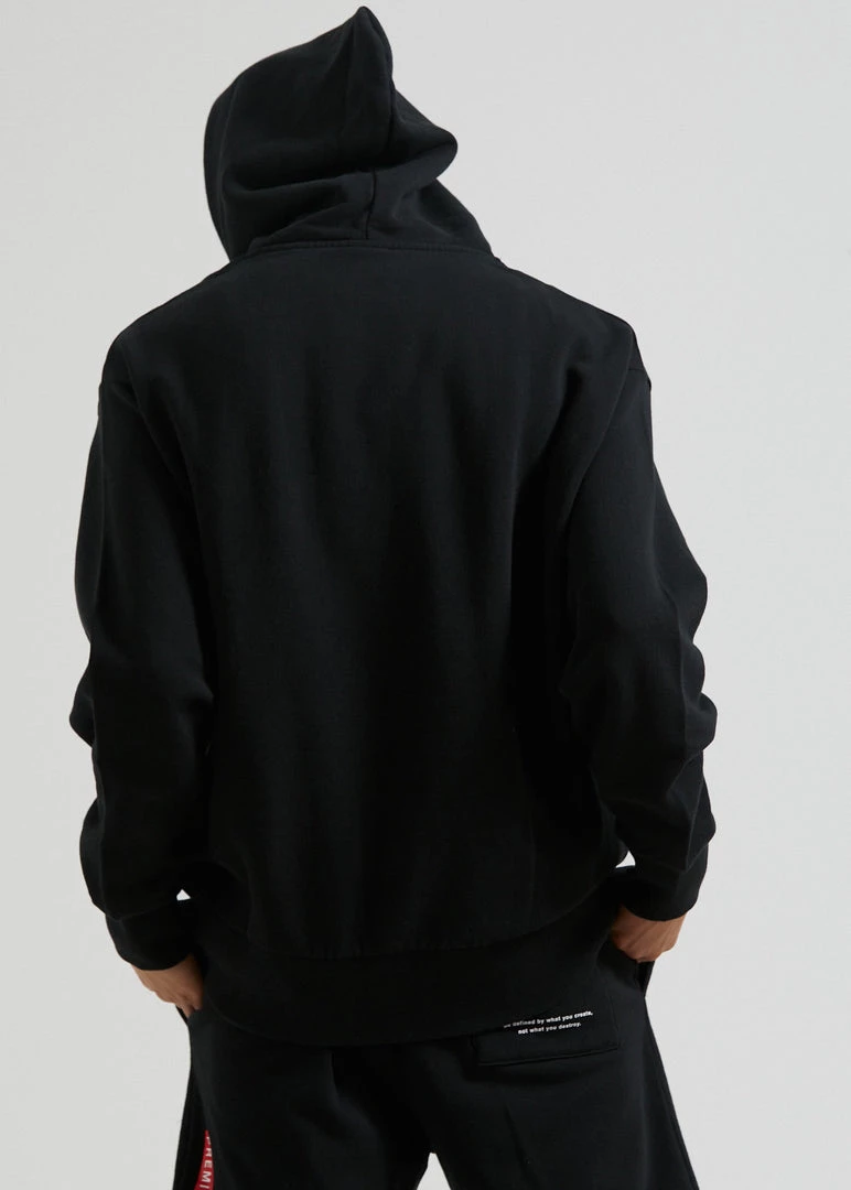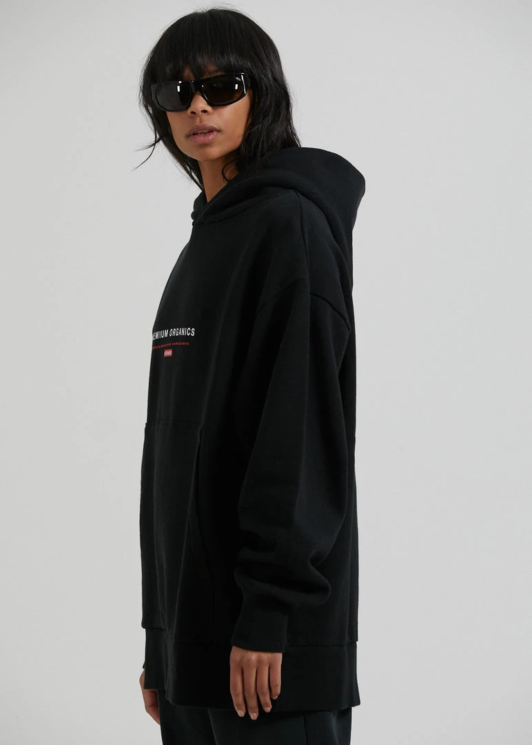 Better than your average oversized hoodie. Crafted from our eco-friendly organic cotton brushed fleece and spun into an open-ended yarn, this jumper has a premium hand-feel while minimising textile waste. Our unisex jumper offers an oversized fit, pull on hood, front pocket and super cosy design. Pair it back with the premium organic sweats for the ultimate lounging combo.