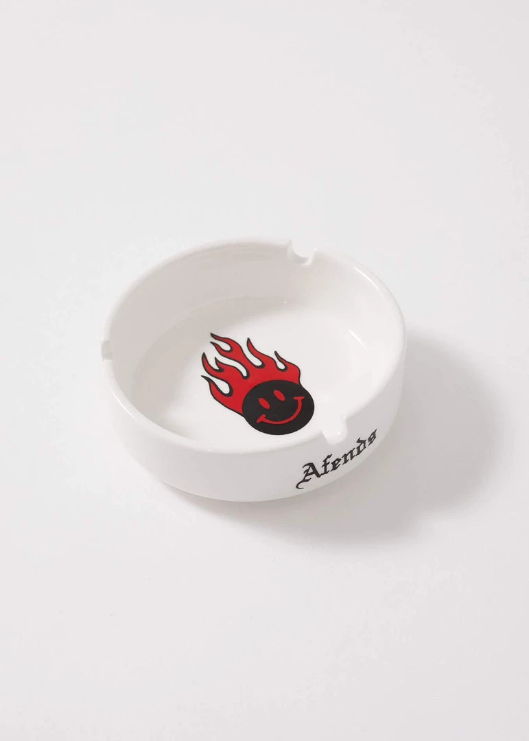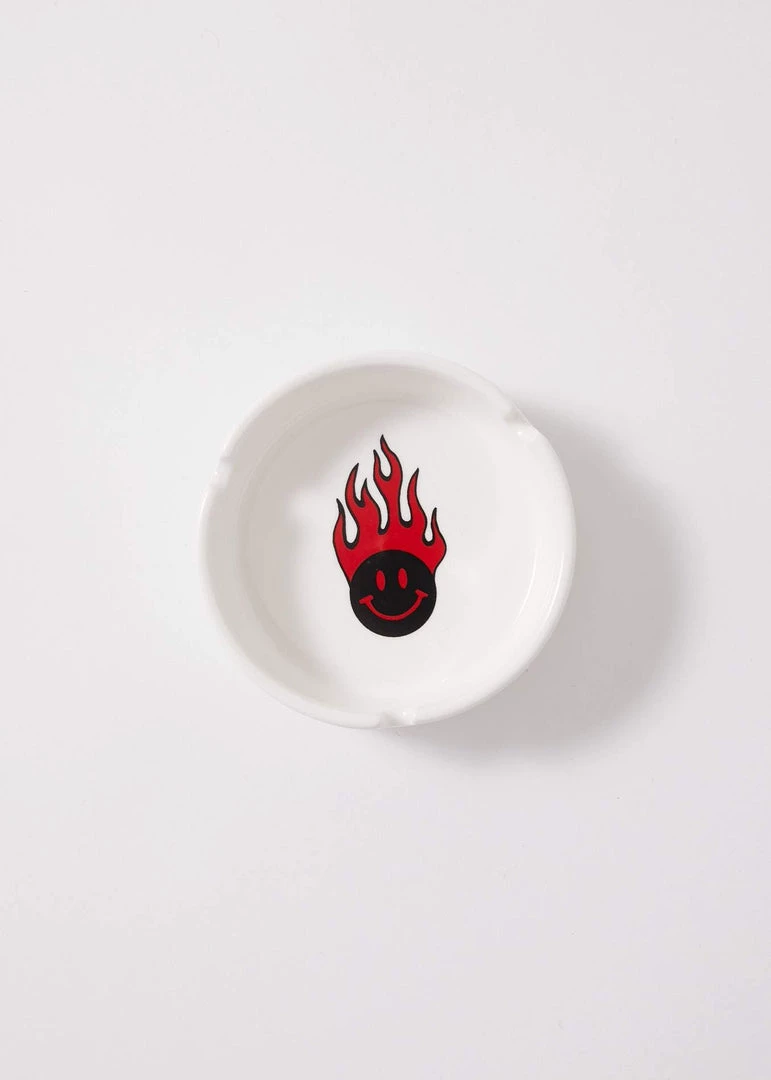 Keep all your bits and bobs in order with our Smiley Trinket Dish. Made from a durable ceramic construction with Nirvanas custom flaming smiley face printed on the inside and Old English style Afends logo printed on the rim, this dish will last a lifetime.