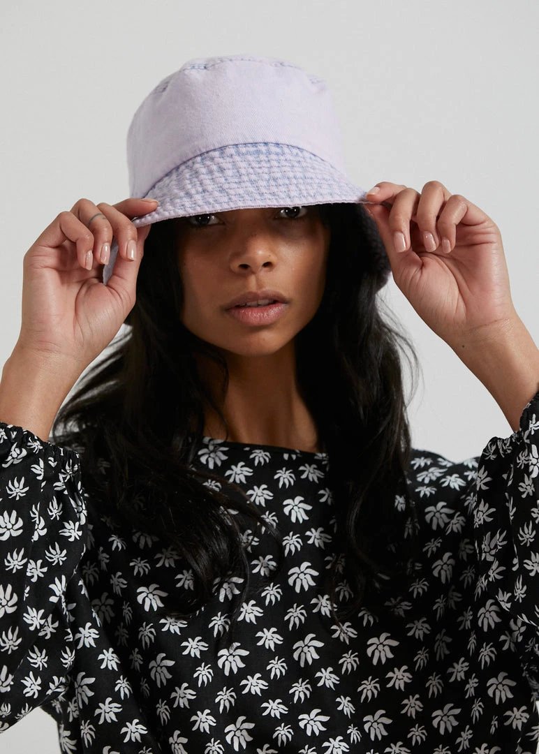 Serious vintage nostalgia in the Zelly bucket hat. We’ve levelled up our hemp denim lineup with our new lilac vintage orchid wash crafted from eco-friendly organic cotton and hemp denim. This bucket hat offers a small and structured brim to pair back with the vintage orchid range for the ultimate combo.