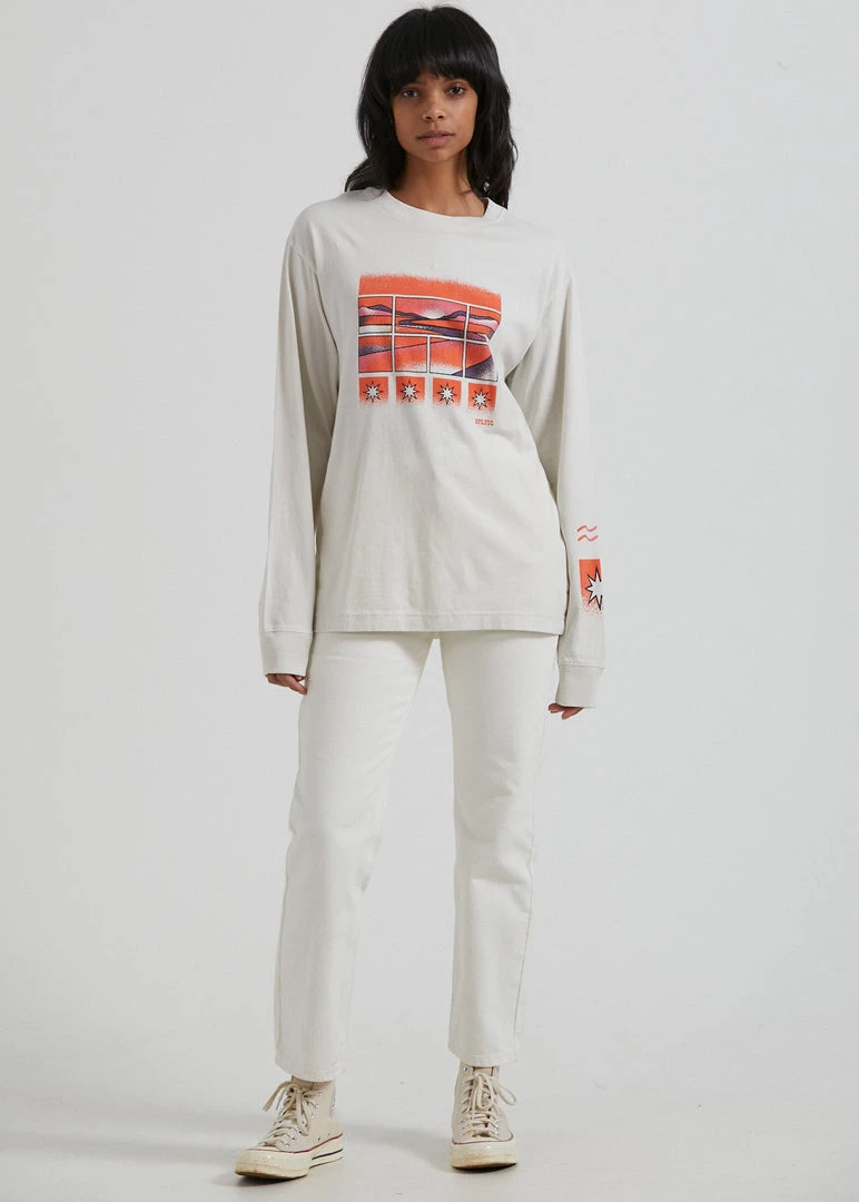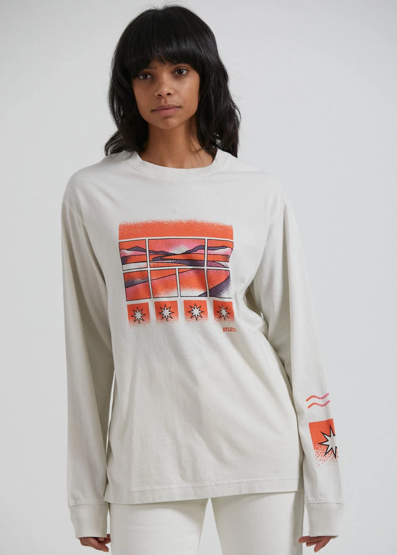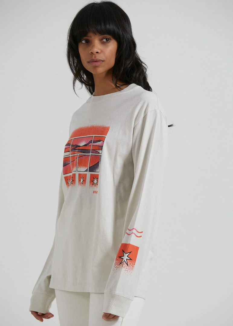 This long sleeve graphic t-shirt will take you anywhere. Created in collaboration with Victoria Sieczka, this tee features heavy graphic art with contrasting pops of coral. This lightweight long sleeve offers a soft-hand feel and relaxed fit crafted from eco-friendly recycled cotton to wear on repeat.