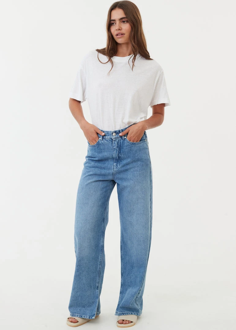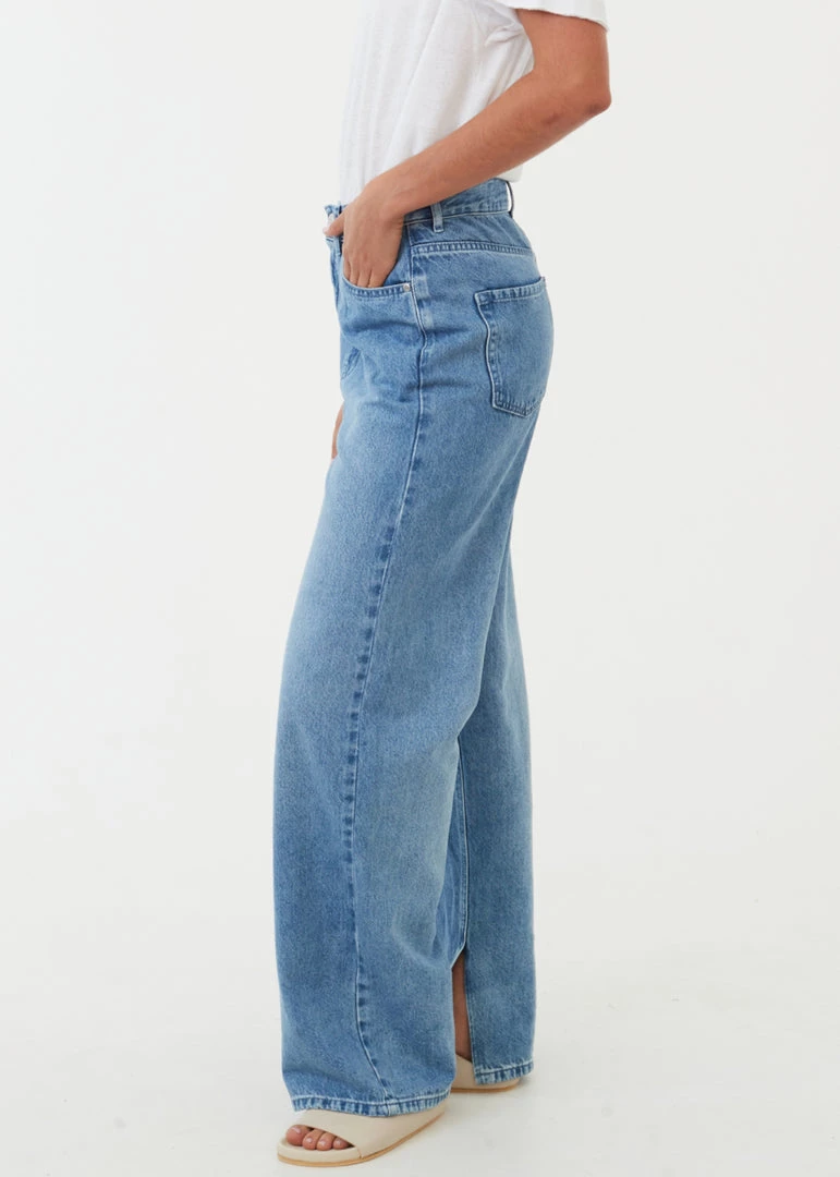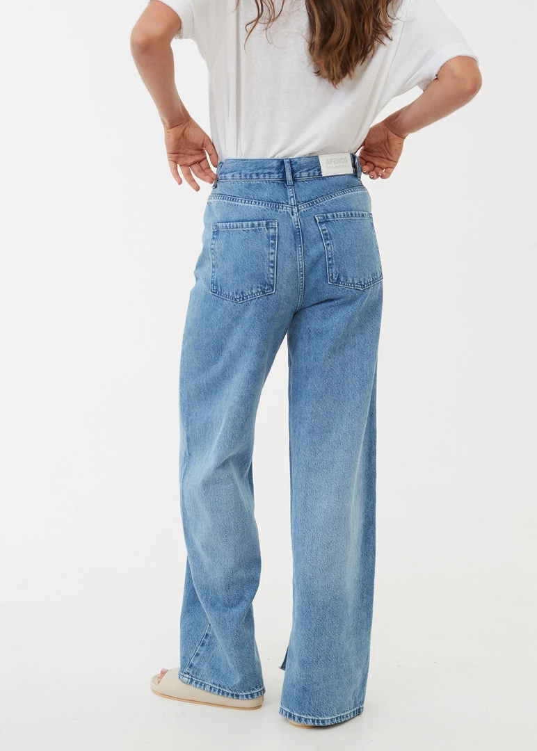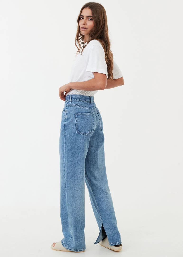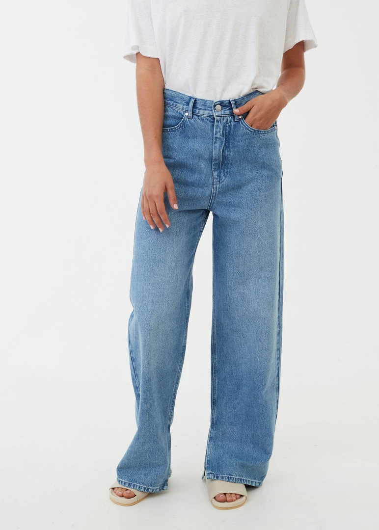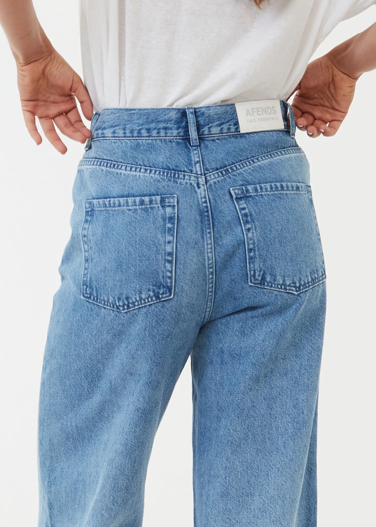 Afends Womens Bella – Hemp Denim Baggy Jeans – Worn Blue