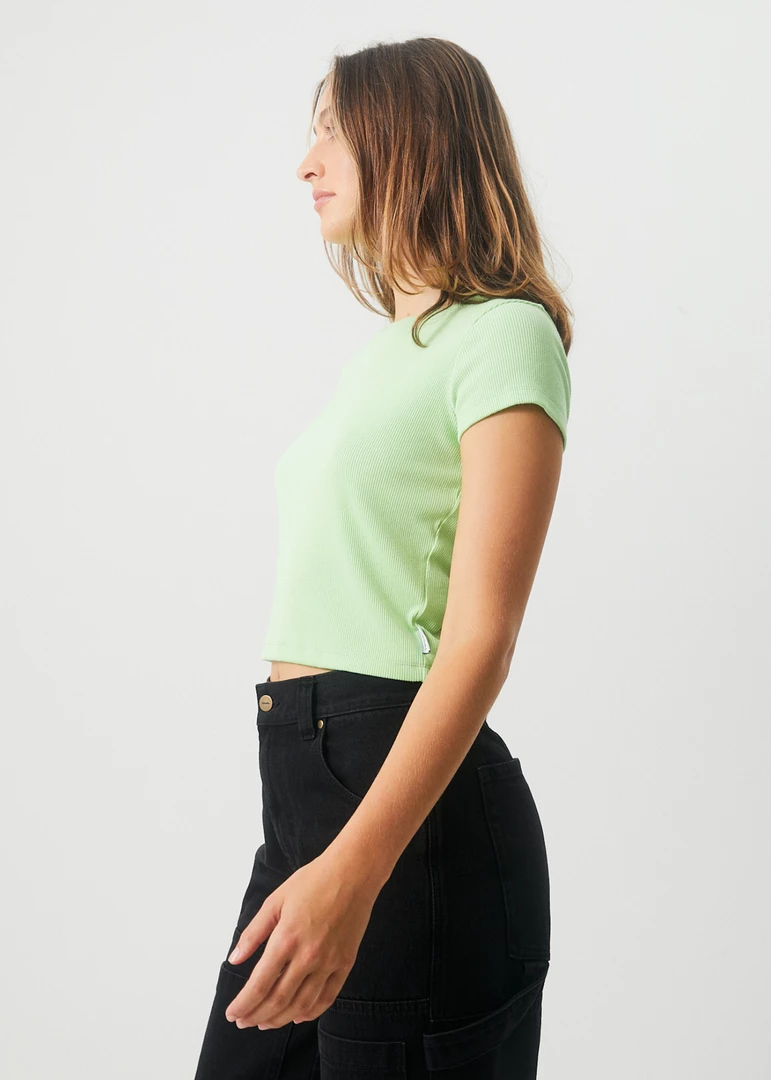 Have faith in this ribbed t-shirt. This eco-friendly tee offers a premium design crafted from heavyweight hemp and recycled poly rib with added stretch for comfort. Our new baby t-shirt offers a semi-cropped silhouette, fitted bodice and short capped sleeves for an effortless appeal. In a trio of easy-to-wear colours, this tee will become the foundation of your wardrobe.