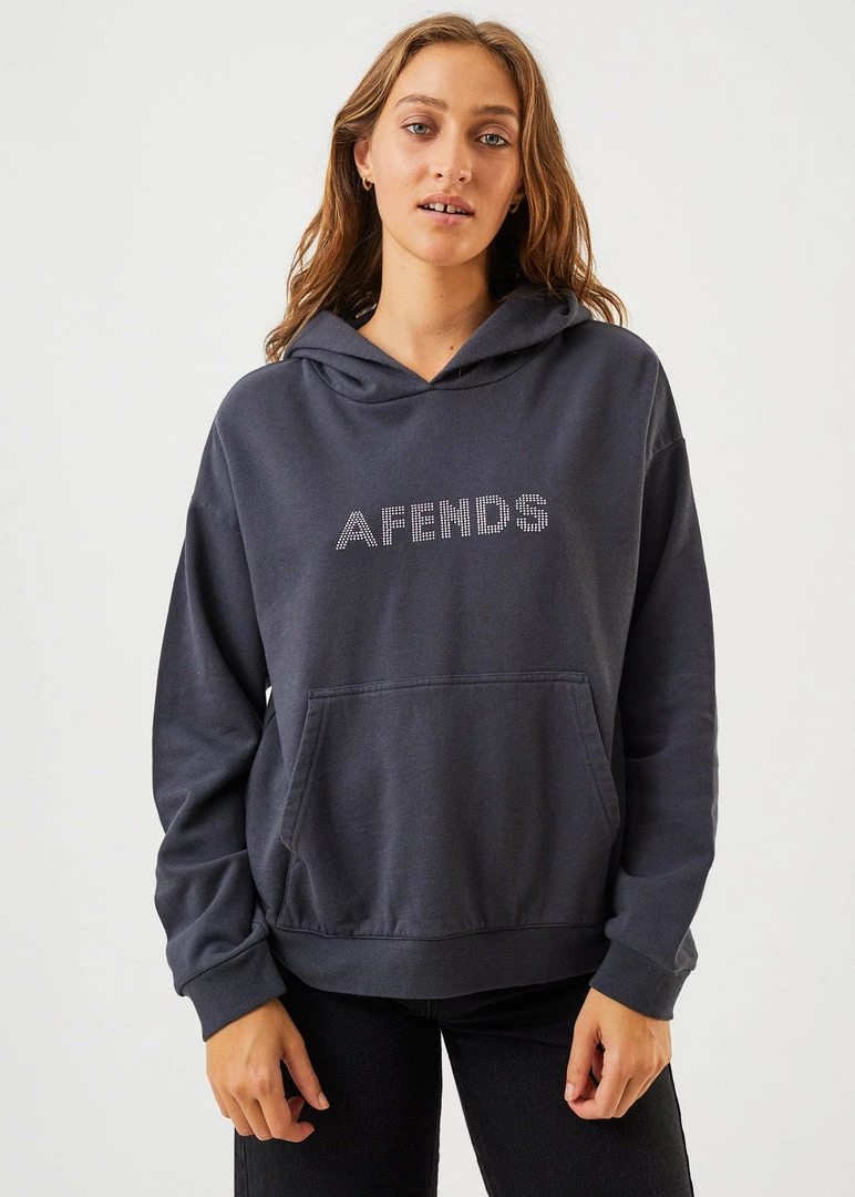 Feeling glitzy in this hoodie. Crafted from eco-friendly recycled cotton brushed fleece, this hoodie has a premium soft-hand feel and durable design for year round comfort. Our signature hoodie silhouette offers a relaxed and slouchy fit with a pull on hood, oversized front pocket and a diamante logo to level up your lineup.