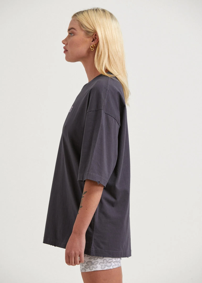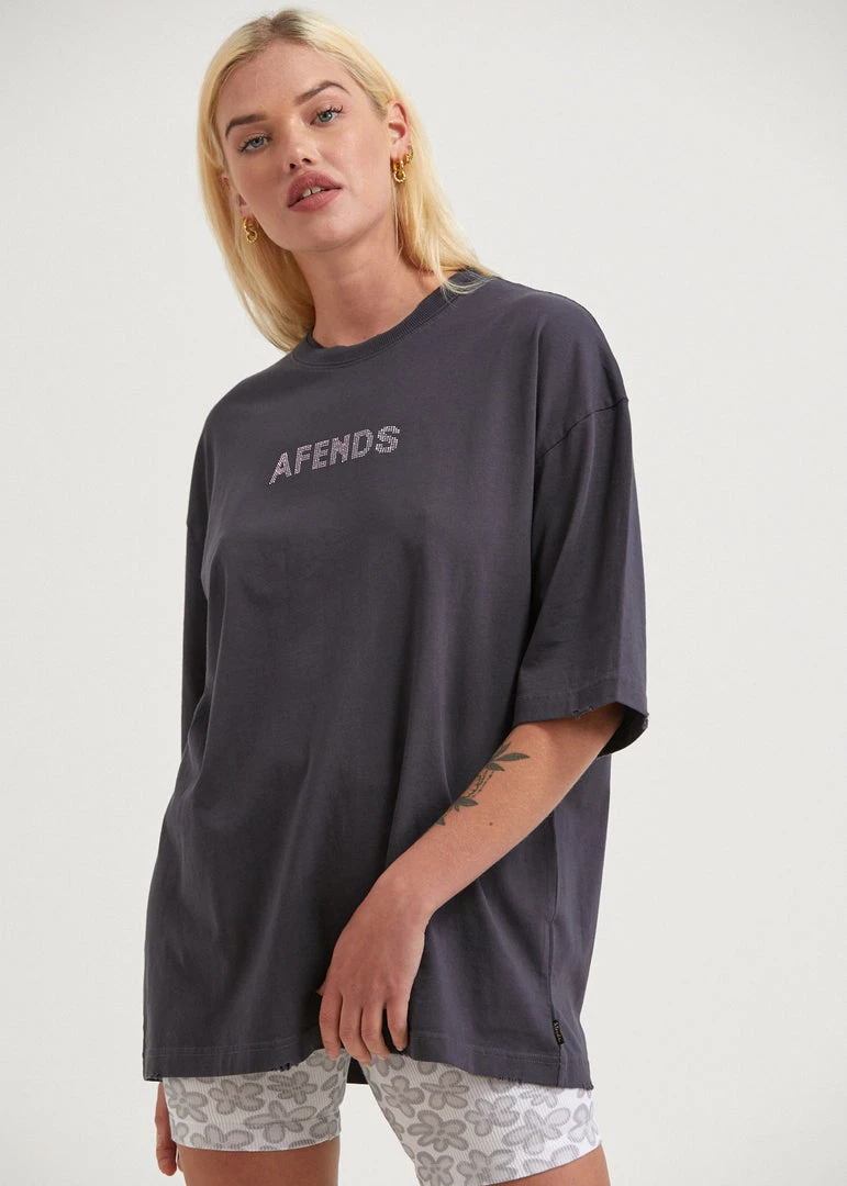 Feeling glitzy in this oversized t-shirt. Crafted from eco-friendly recycled cotton, this short sleeve tee has a premium soft-hand feel and lightweight design for everyday wear. Our signature oversized silhouette offers a relaxed and slouchy fit with slightly longer sleeves and a diamante logo to level up your lineup.