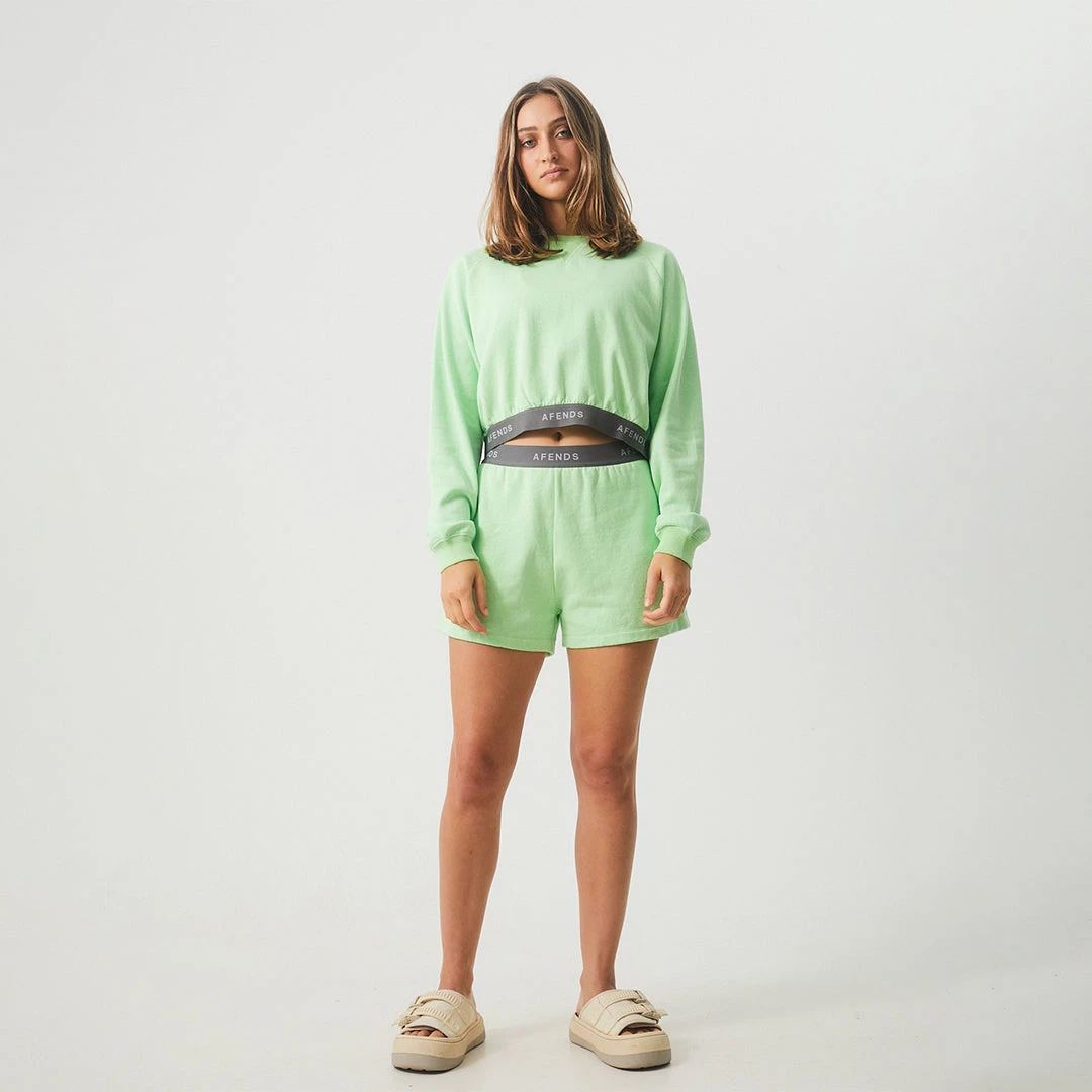 Sink into this crew neck jumper. Crafted from eco-friendly organic cotton and hemp brushed fleece, this jumper offers a soft and cosy shell, relaxed fit and cropped design. Pair it with the matching shorts for the ultimate lounging duo.