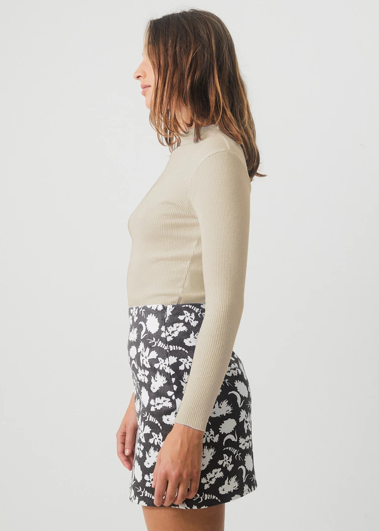 This long sleeve top is iconic by name and iconic by nature. Our eco-friendly blend of recycled poly and hemp rib offers a slight stretch with a textured and heavyweight hand-feel. Our long sleeve top offers a fitted silhouette, flattering high cut neckline and raw-edged hem. In a duo of everyday colours, it pairs perfectly with anything high-waisted.