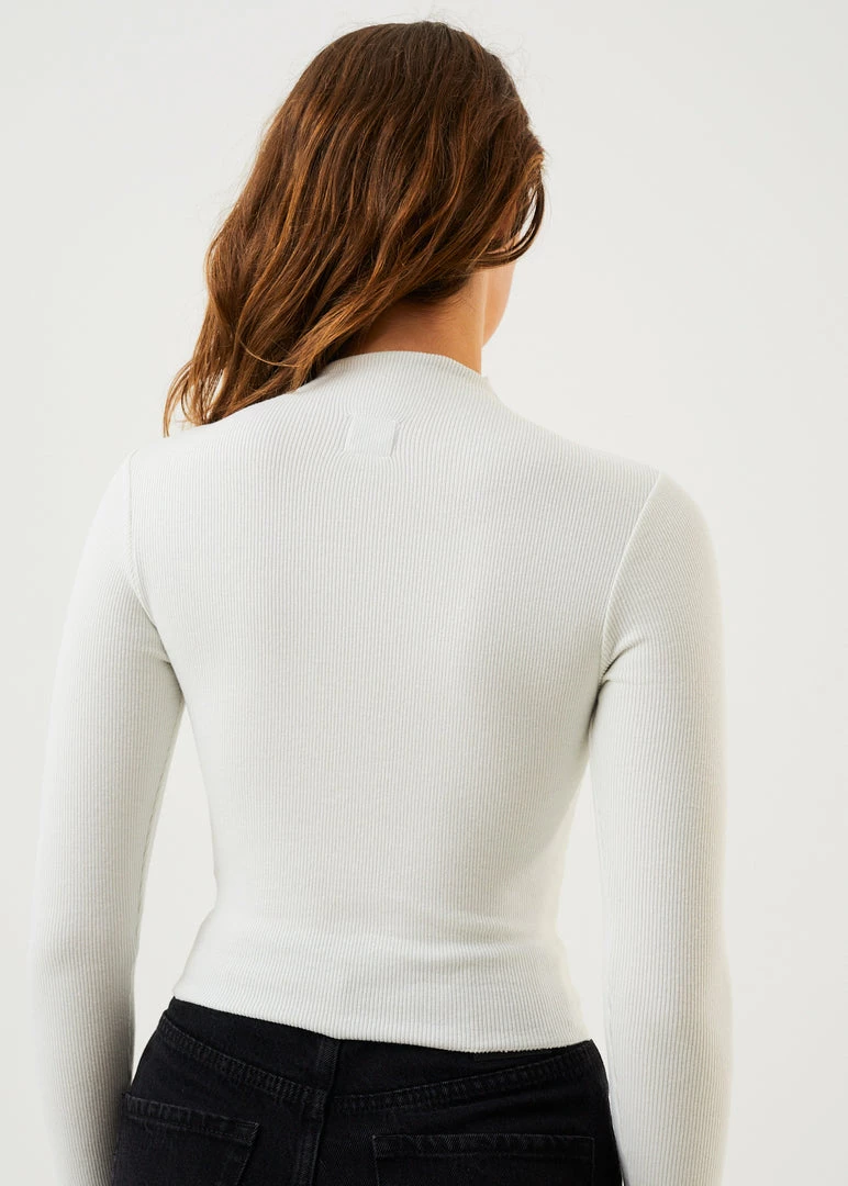 This long sleeve top is iconic by name and iconic by nature. Our eco-friendly blend of recycled poly and hemp rib offers a slight stretch with a textured and heavyweight hand-feel. Our long sleeve top offers a fitted silhouette, flattering high cut neckline and raw-edged hem. In a duo of everyday colours, it pairs perfectly with anything high-waisted.