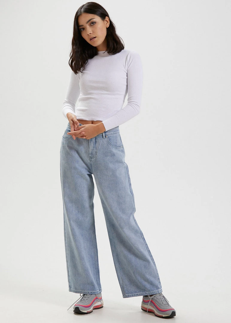 The Kendall low-rise jeans are the ultimate throwback pair. With a nod to the 90s, these pants offer a nostalgic low-rise loose-fitting leg in our new vintage blue wash. Our eco-friendly organic cotton and hemp denim construction delivers a durable design to see you through for years to come.