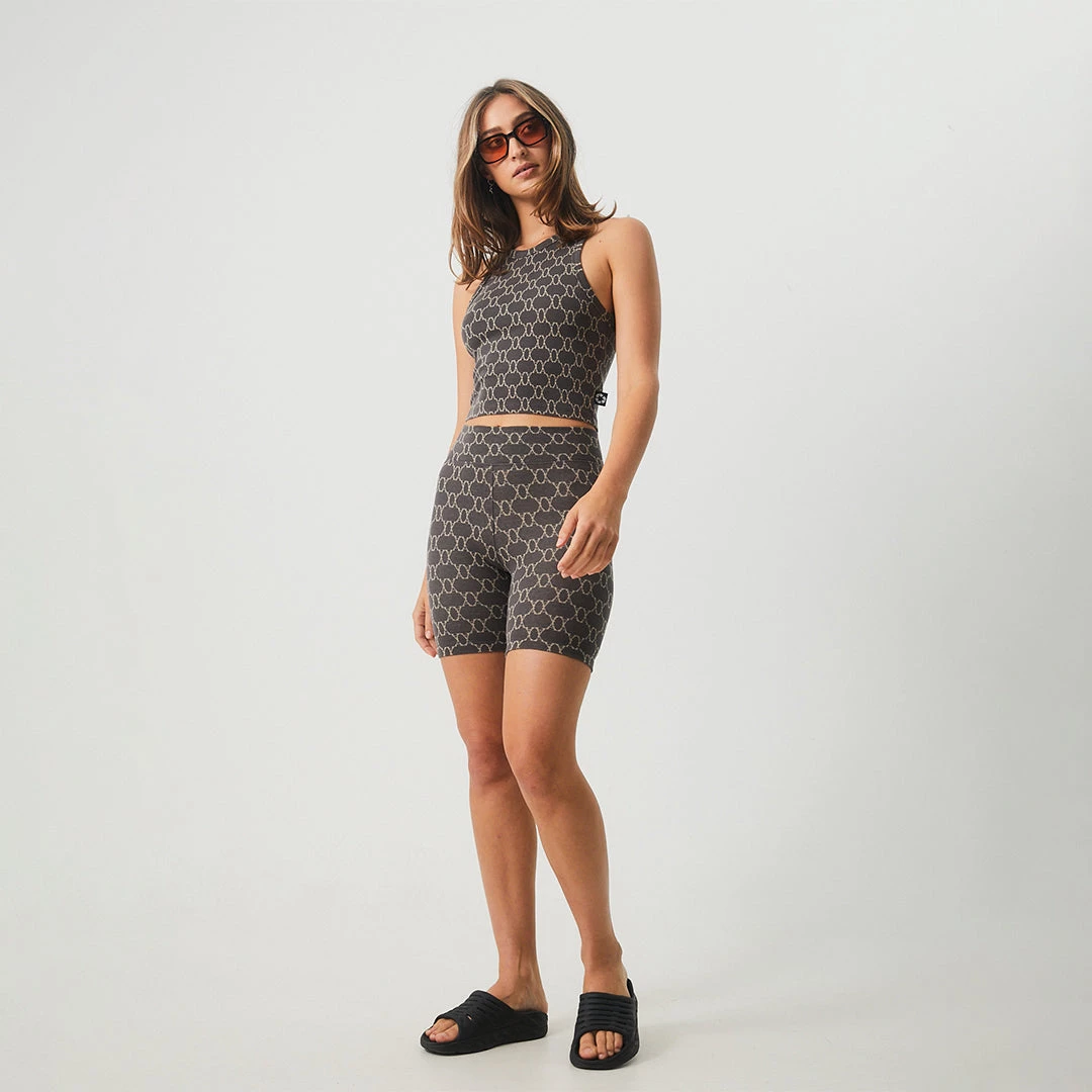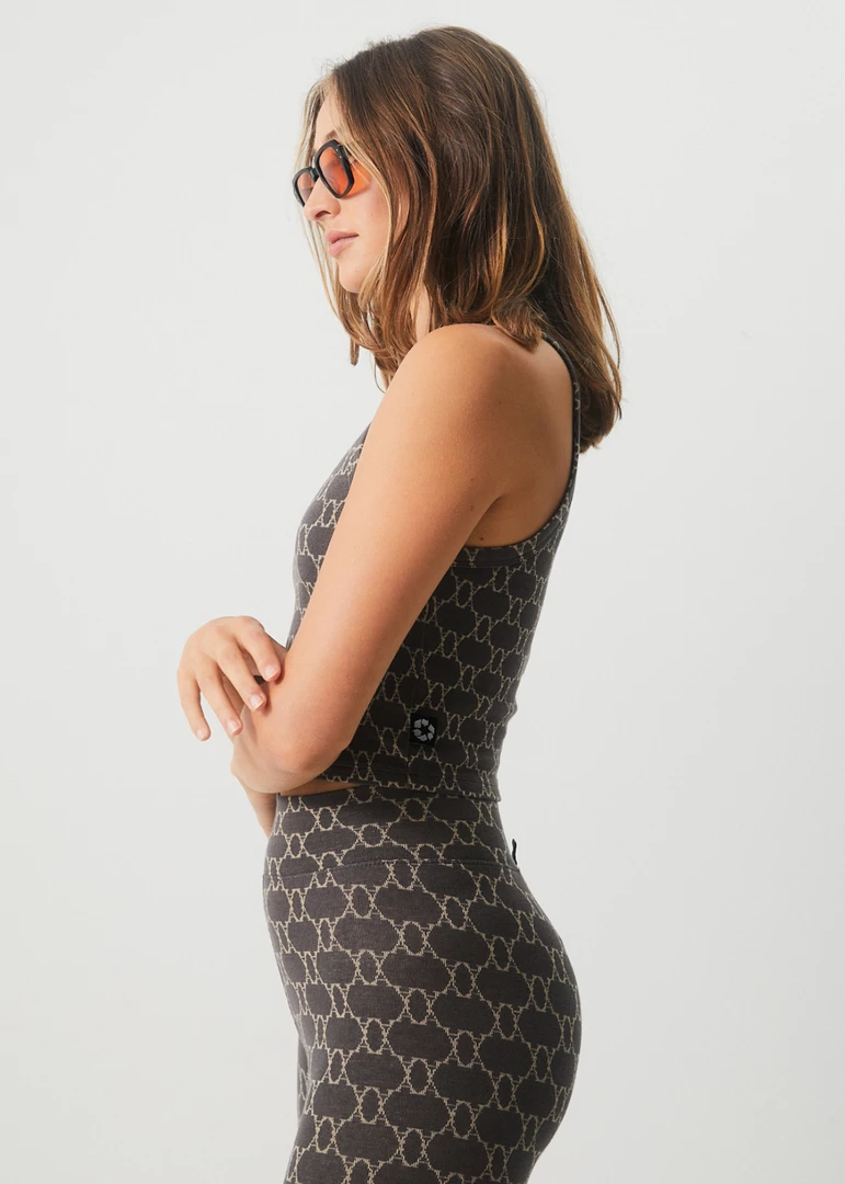 Sport meets streetwear in this cropped singlet spun from a super-fine eco-friendly hemp rib. Boasting a feminine shallow scooped neckline and racerback styling, this cropped top features an all-over monogram print to pair with the matching leggings.