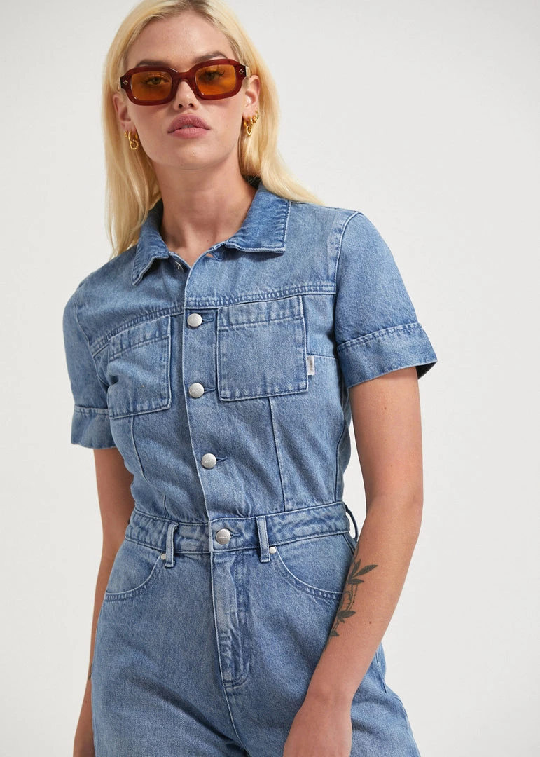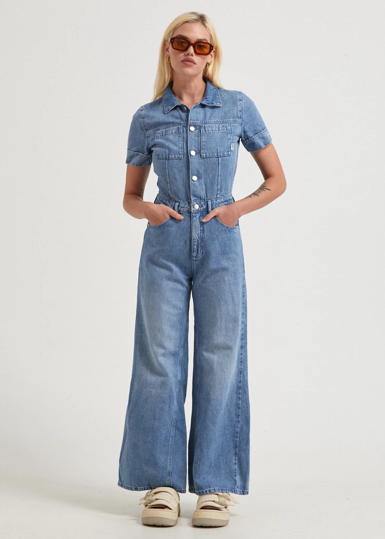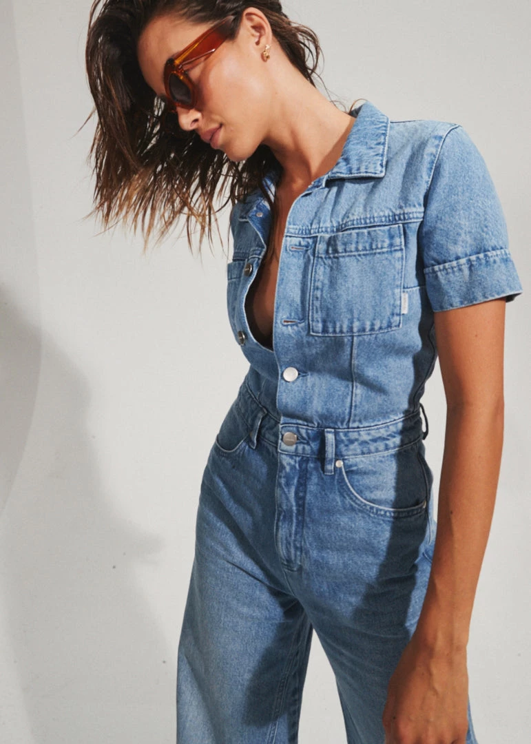 Make room for the Miami jumpsuit. The newest silhouette to join our hemp denim lineup offers a super flared leg inspired by the Gigis, a flattering fitted design and a button-up front with a four-pocket combo and THC branding patch on the back. In eco-friendly organic cotton and hemp denim, this durable jumpsuit will last you years.