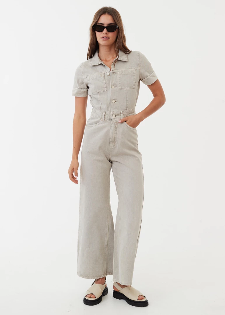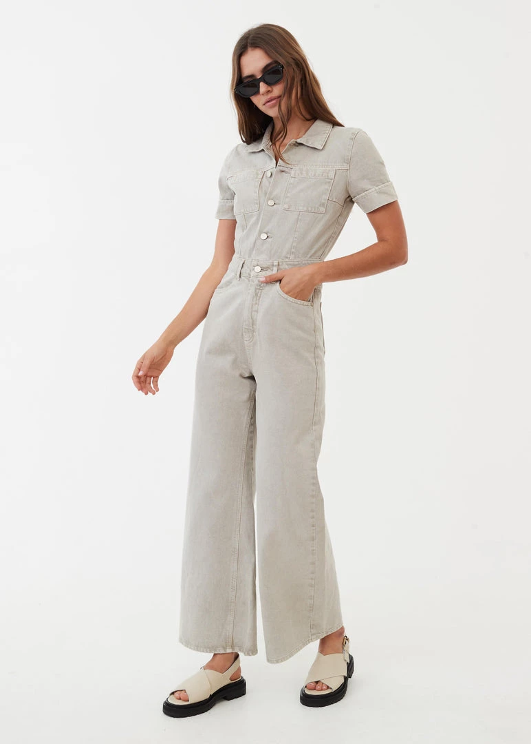 Make room in your lineup for this denim jumpsuit. We’ve brought our best-selling silhouette back in a vintage washed eco-friendly organic denim. Inspired by the Gigi jeans, this jumpsuit offers a wide flared leg and flattering fitted design detailed with a button-up front and four-pocket combo to wear all-year long.