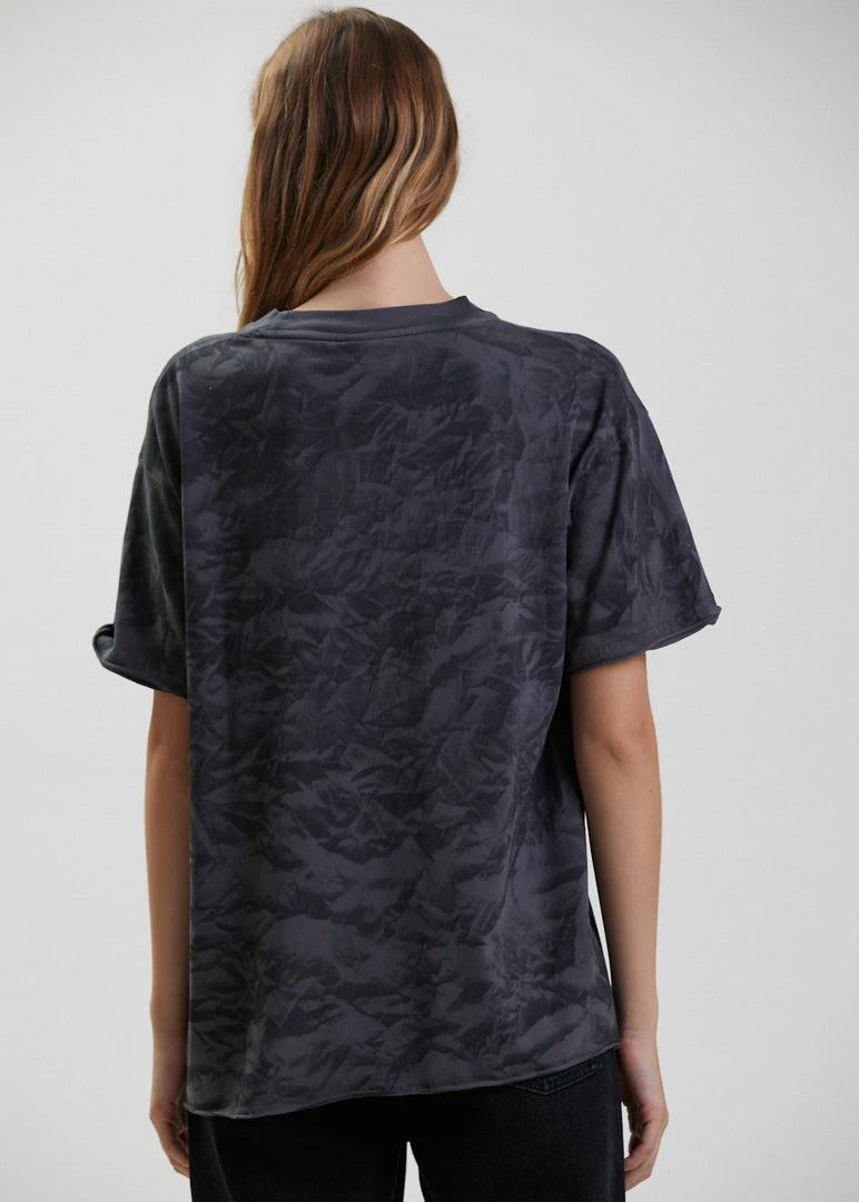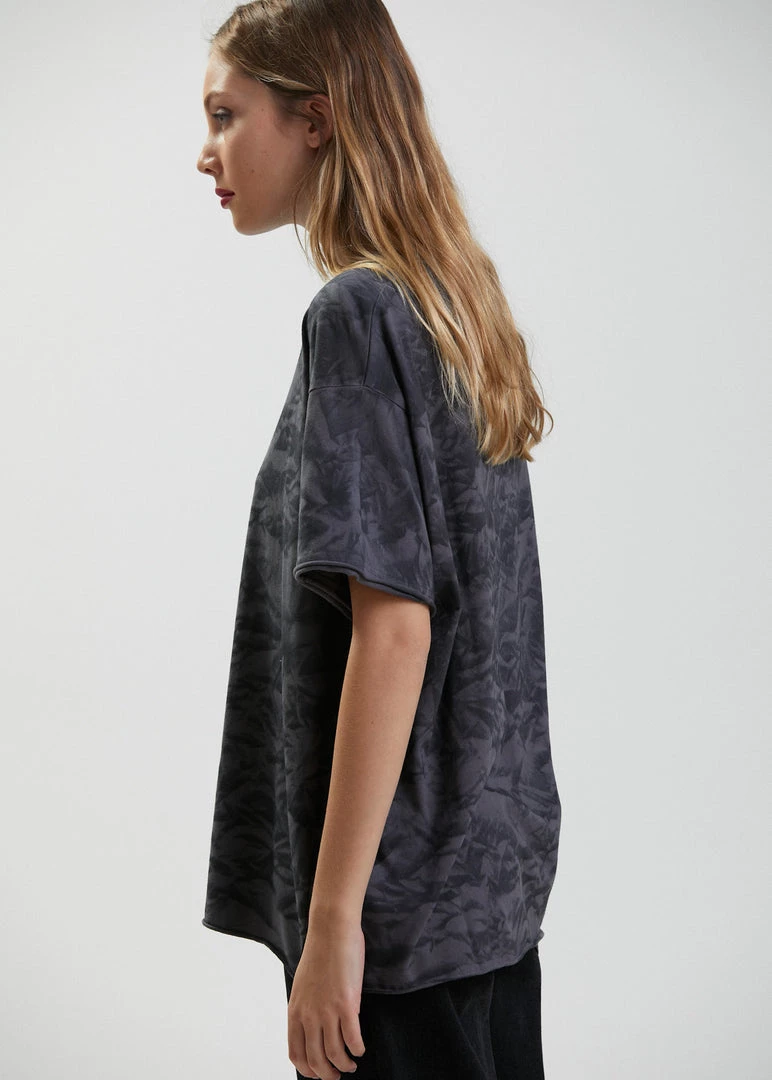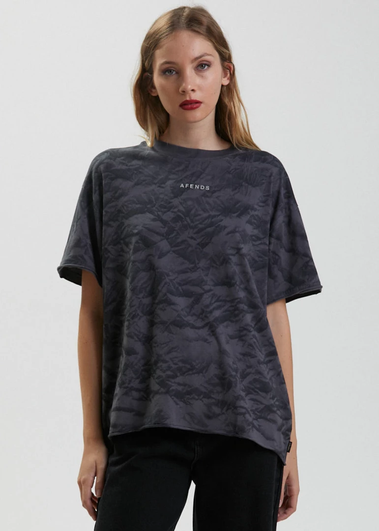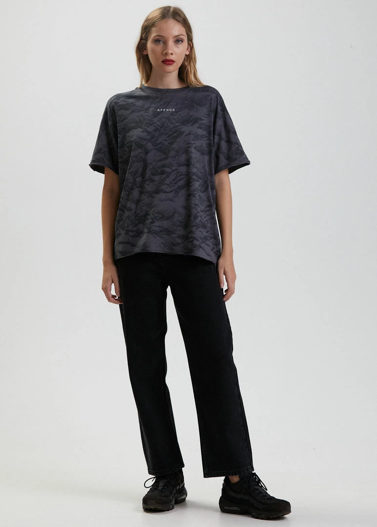 Better than your average oversized tee. We have used a scrunch and dye technique to achieve a textured washed black effect spun onto eco-friendly recycled cotton threads. In our super slouchy oversized silhouette with a contrast logo, you can pair this short sleeve tee with everything and wear it on repeat.