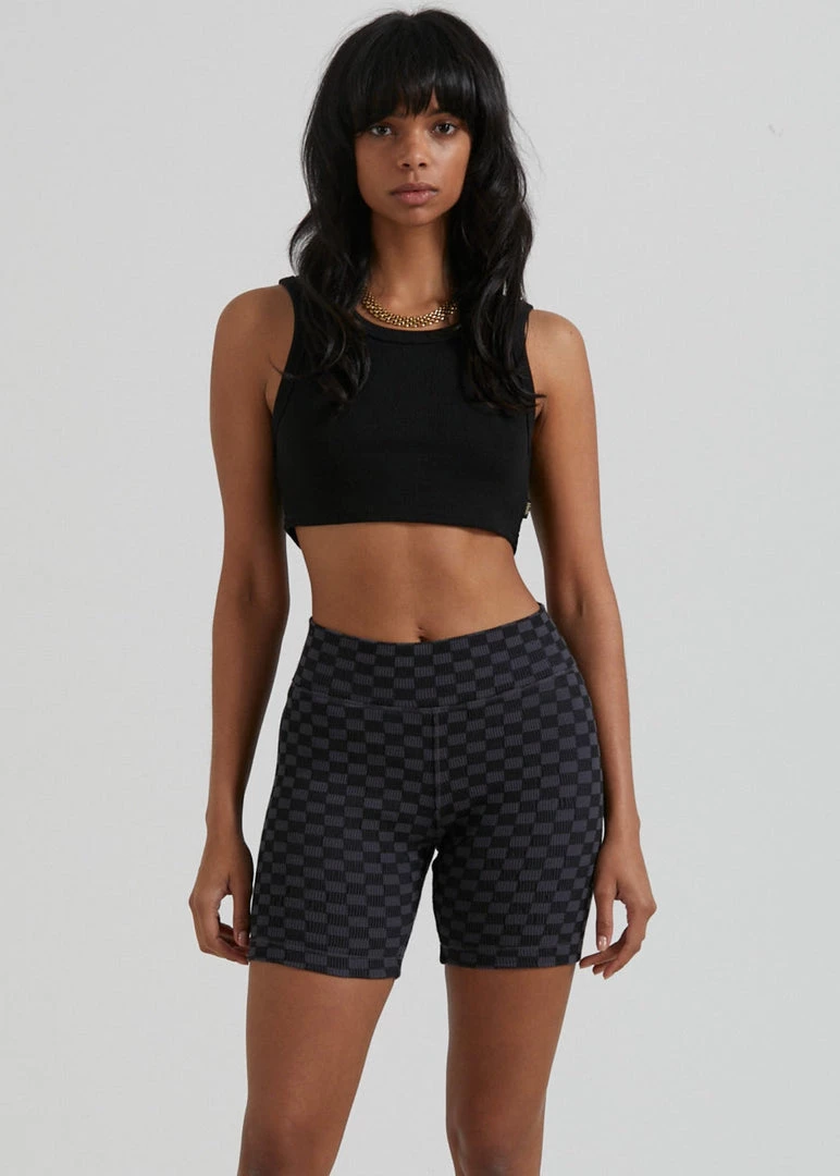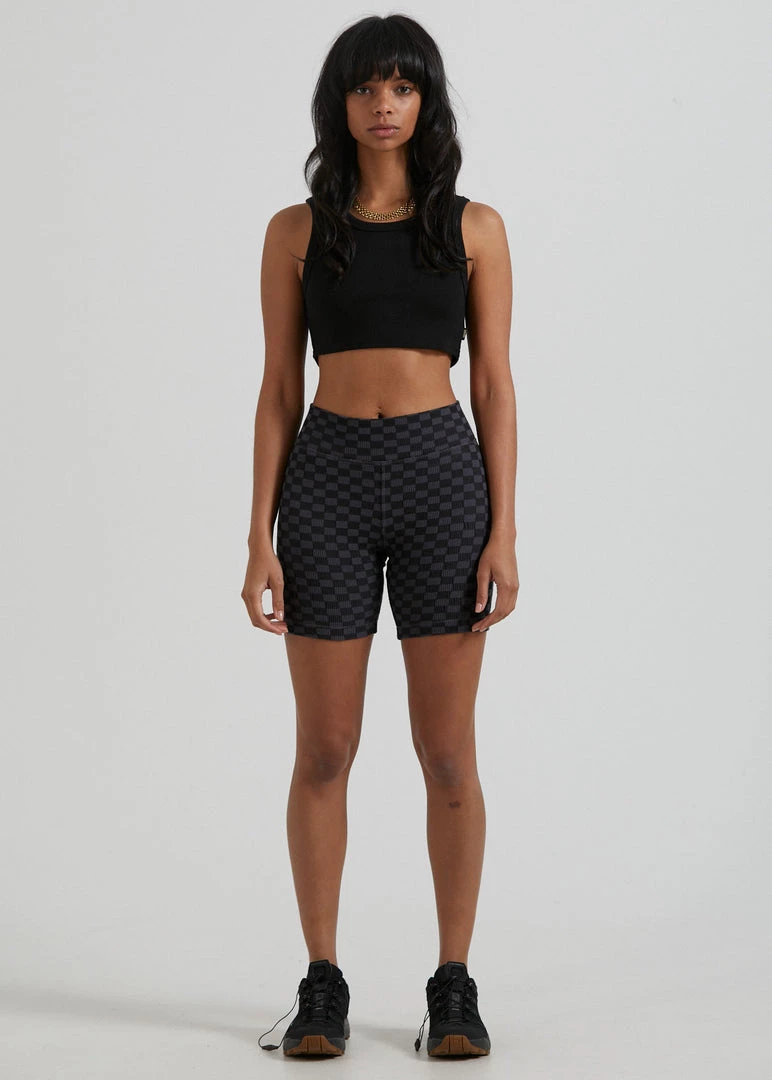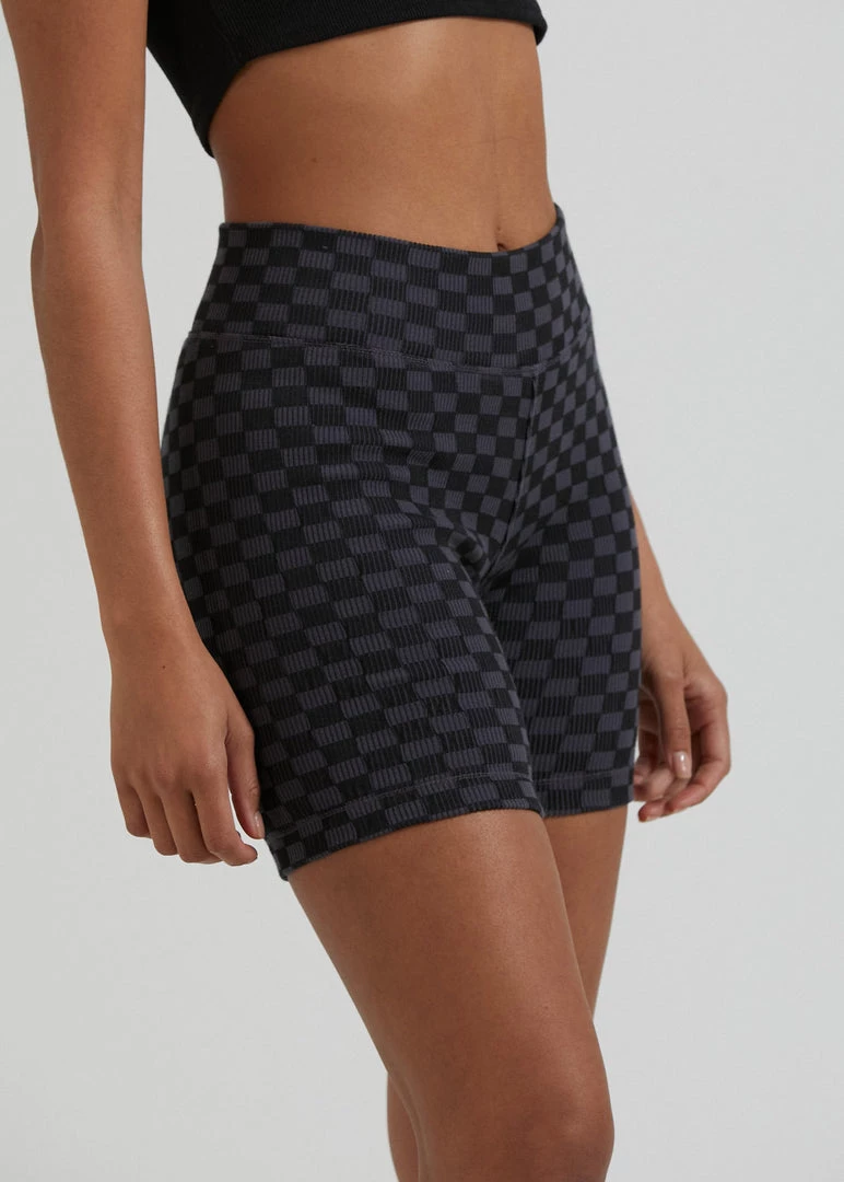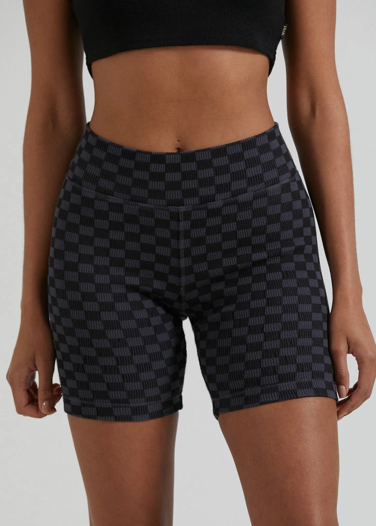 Check out our new ribbed bike shorts. Our premium recycled cotton rib with added stretch offers a heavyweight design for a structured and supportive fit. Finished in our new checkerboard pattern, you can pair it back with the matching cropped top for the ultimate combo.