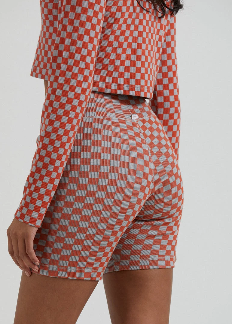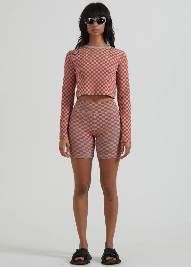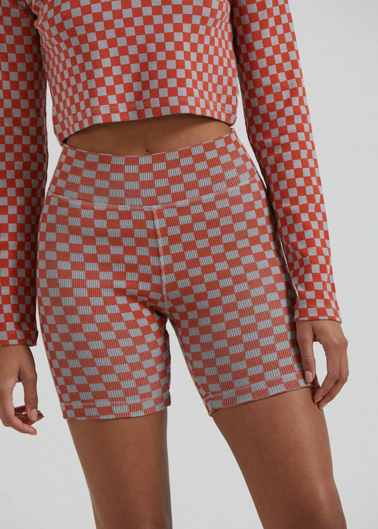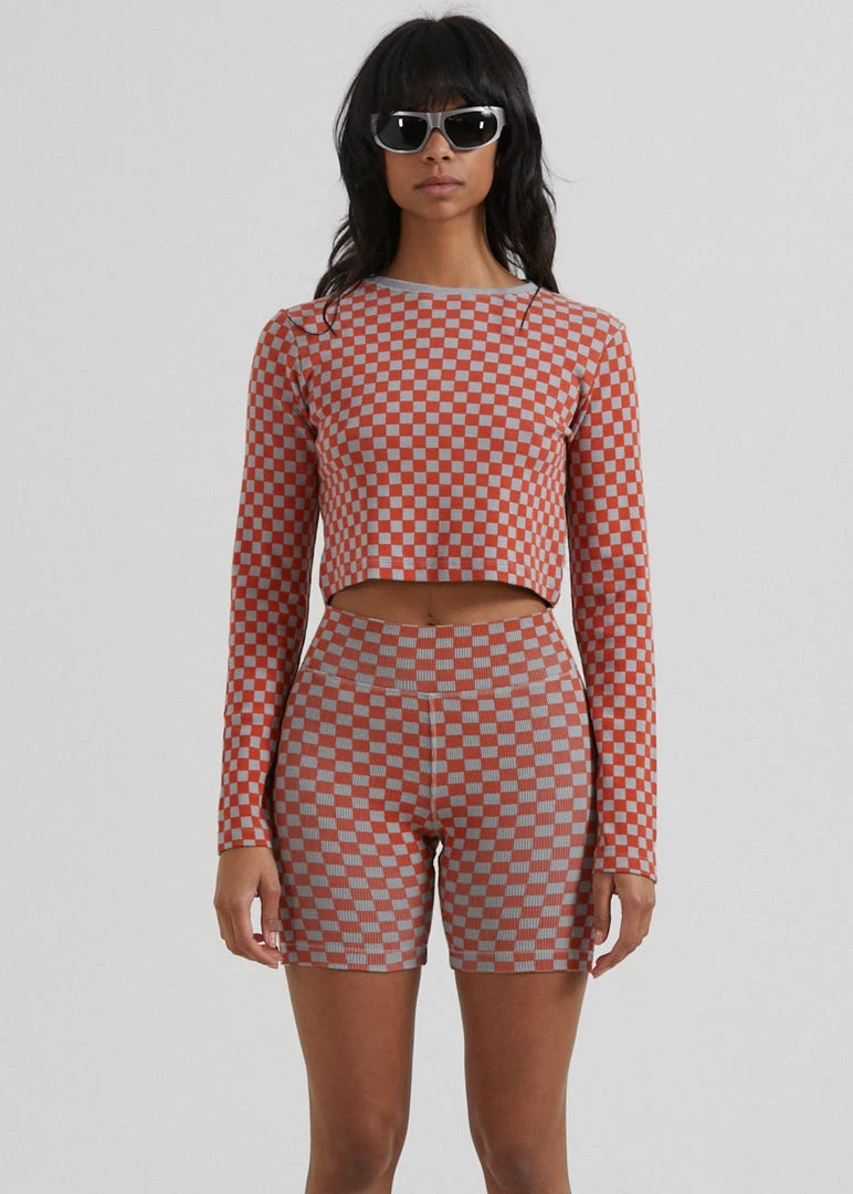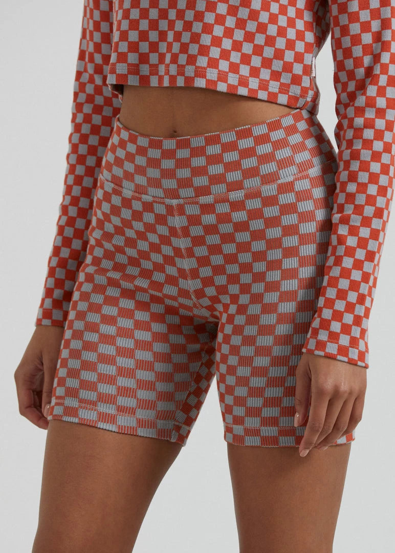 Check out our new ribbed bike shorts. Our premium recycled cotton rib with added stretch offers a heavyweight design for a structured and supportive fit. Finished in our new checkerboard pattern, you can pair it back with the matching cropped top for the ultimate combo.