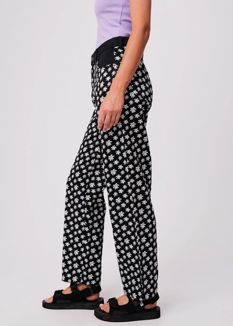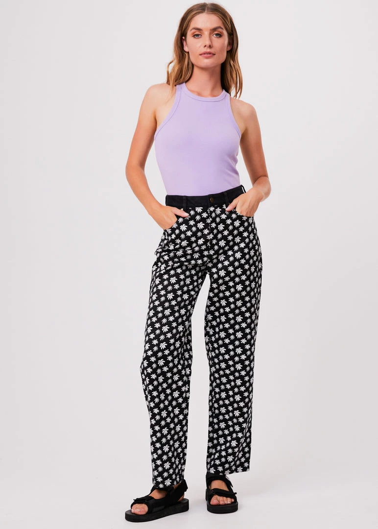 Pretty is in these pascale pants. Following our shelby shape, these pants offer a flattering high-rise waist, wide-leg cut, contrast waistband and palm tree print created in collaboration with Franny Badger. In our eco-friendly hemp and organic cotton canvas twill, these pants are durable, midweight and look good with a pop of lilac.