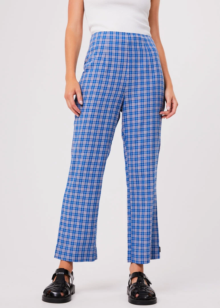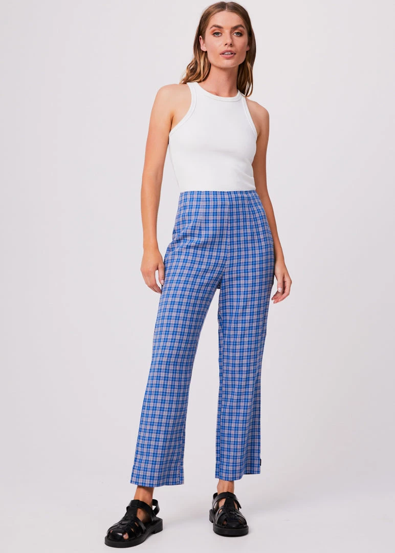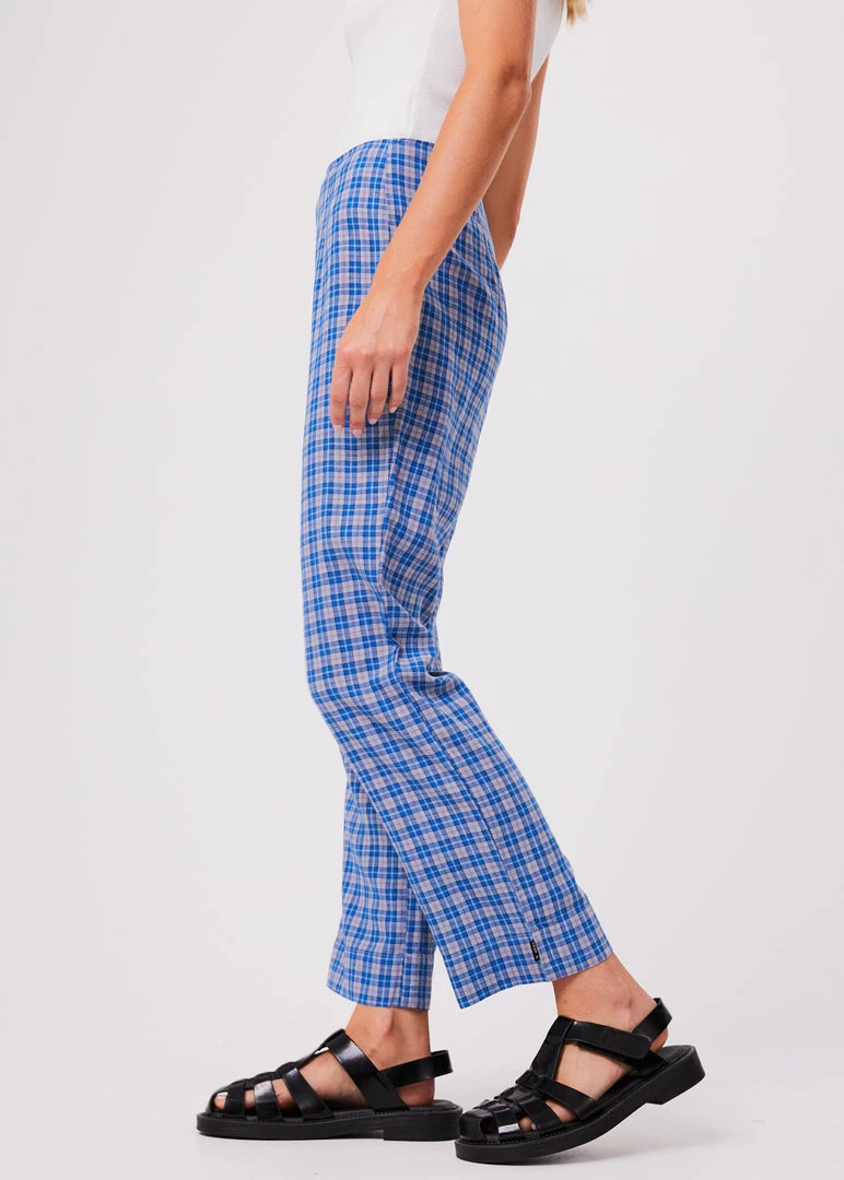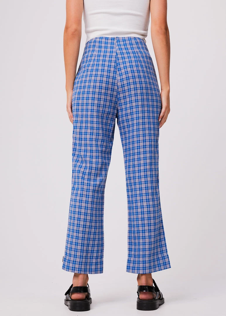 These high waisted pants check all the boxes. Following our classic high-waisted silhouette, these slim-fitting pants offer a seamless design with an invisible side zip entry. In the eco blend of hemp and tencel, these pants are lightweight, breathable and add a pop of colour in our custom electric blue check.