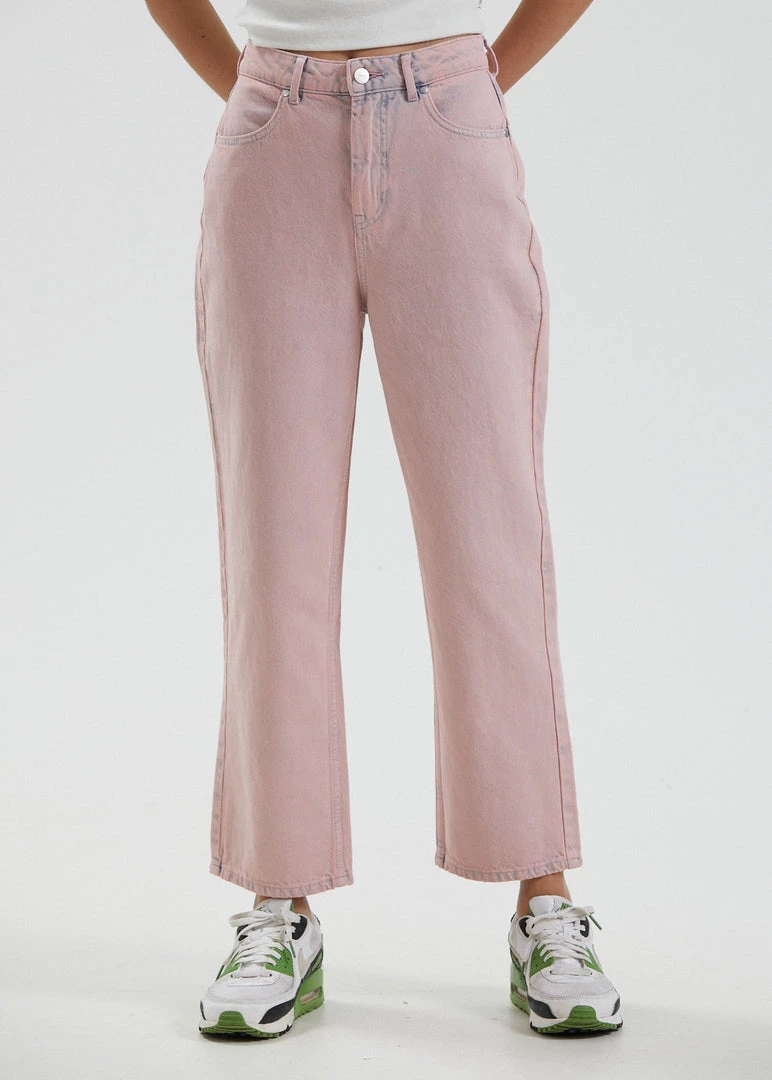 These high-waisted jeans would look good on you. Our best-selling Shelby pants are here in our new vintage pink washed organic cotton and hemp denim construction. Offering the high-waisted wide-leg fit with all the bells and whistles you know and love, our vintage Shelby’s are straight out of the 90s. Pair them with the matching bucket hat for a retro pink outfit.