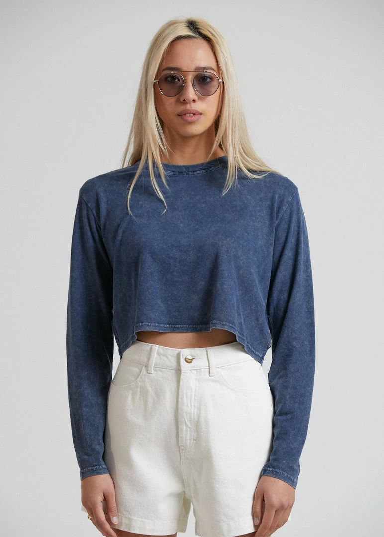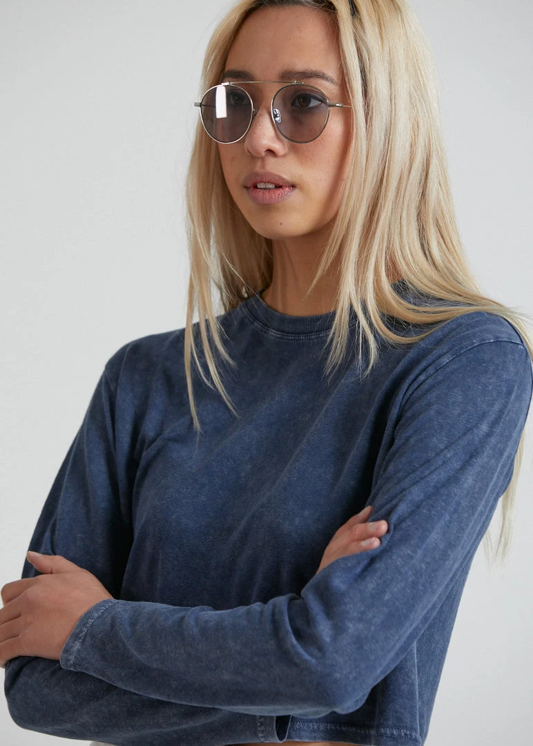 In a cropped, relaxed fit, this long-sleeve t-shirt has no sleeve cuffs making it super slouchy and a great layering piece. In a series of seasonal colours. Finished in a heavy stone wash to give that well-loved worn in look – Skylar is the staple every wardrobe needs.