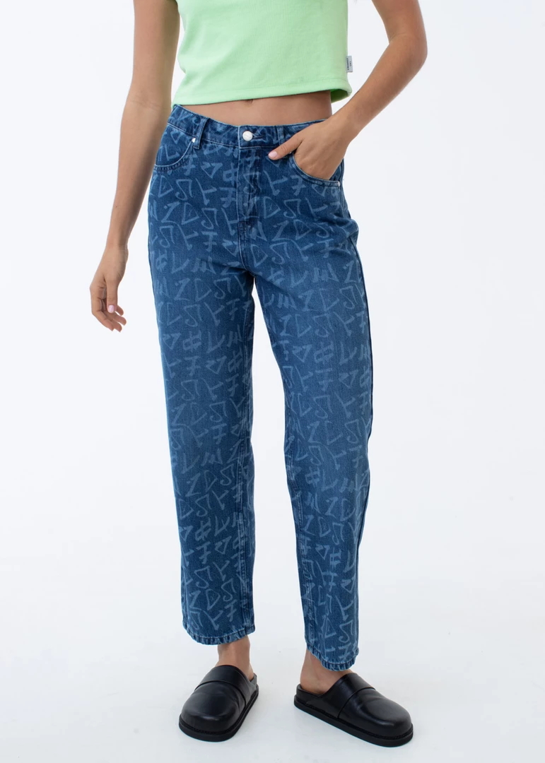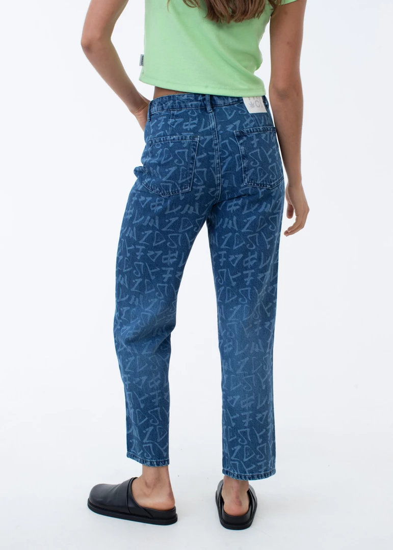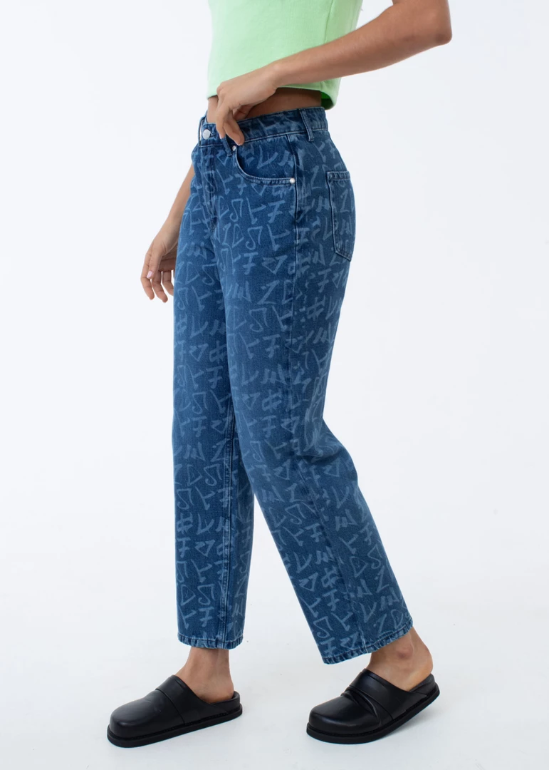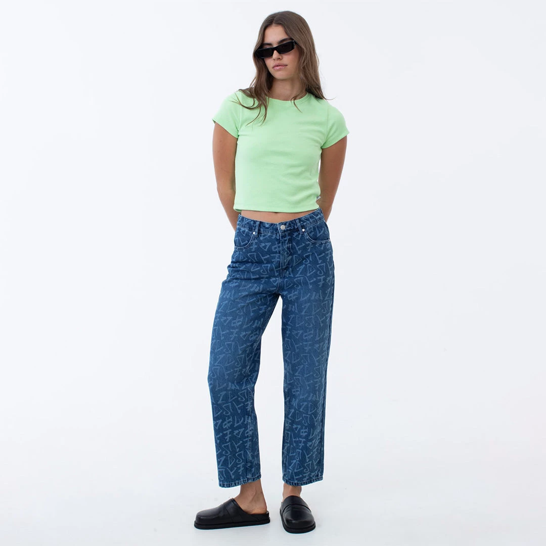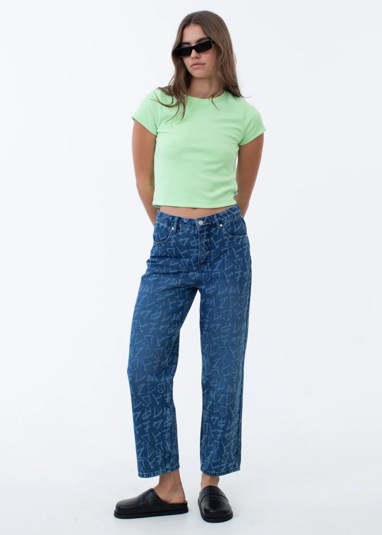 A fresh update on our cult-classic wide-leg jeans. Our popular silhouette offers a flattering high-waisted fit and wide-leg design in eco-friendly and ever-enduring hemp denim. With all-over graffiti-style artwork, you can pair it with a pop of lime green or back with a white basic for everyday wear.