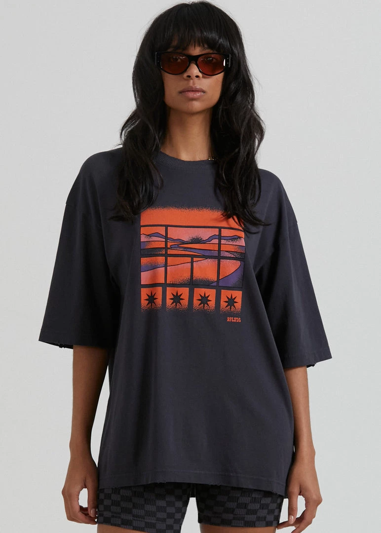 Stand out in this oversized graphic t-shirt. Created in collaboration with Victoria Sieczka, this tee features heavy graphic art with contrasting pops of coral. In our signature oversized silhouette, you can expect a soft and slouchy design with distressed detailing crafted from eco-friendly recycled cotton.