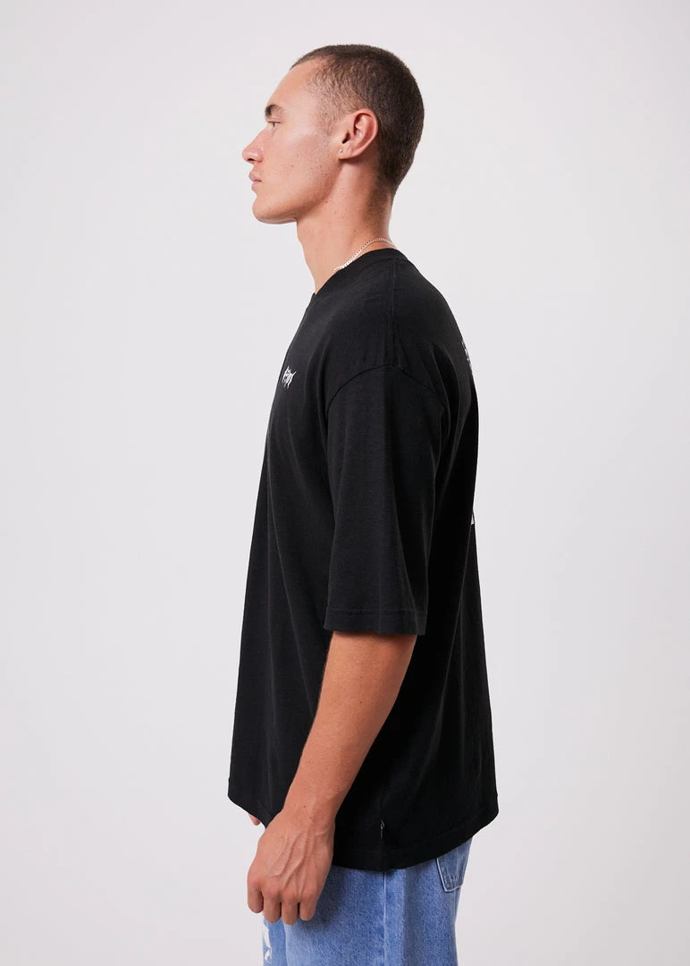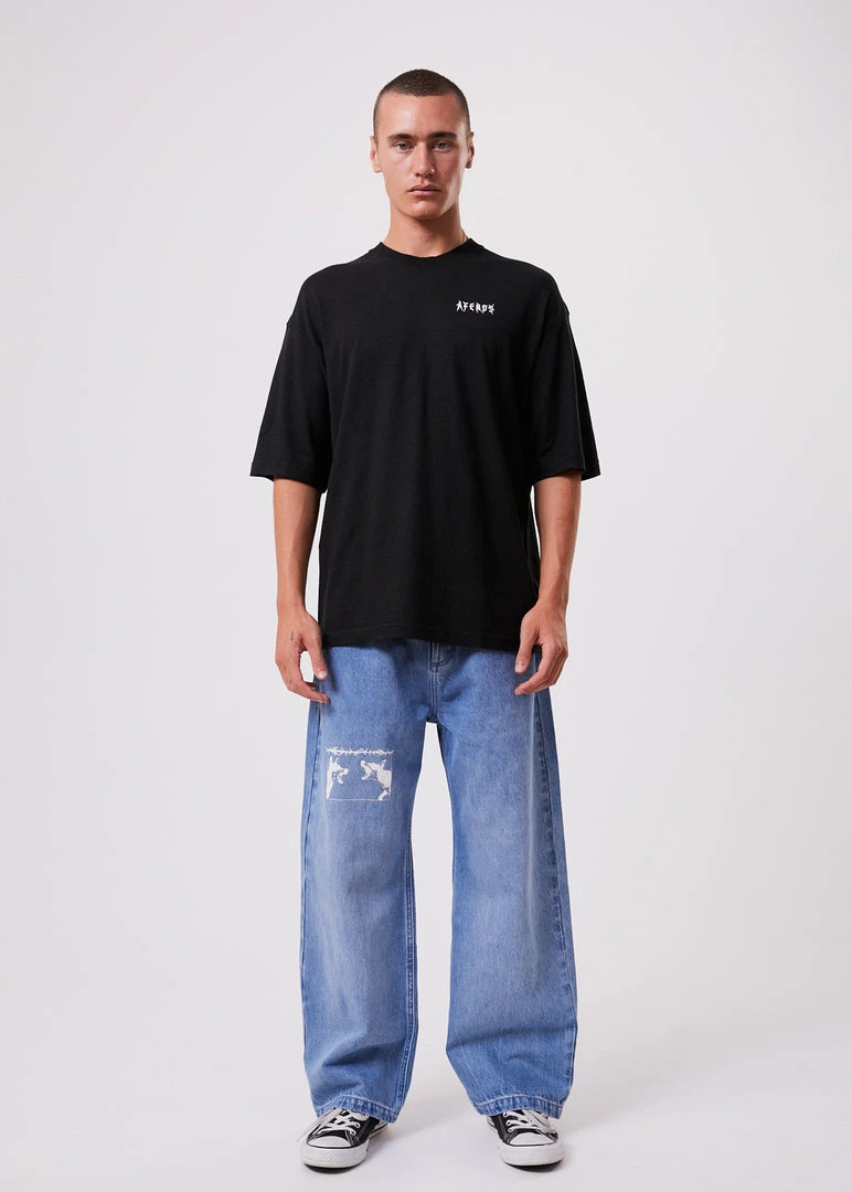 Heavy metal aesthetic in this oversized graphic t-shirt. Created in collaboration with our good mate Luke Walker for the capsule Actual Pain, this tee speaks to Afends punk roots. Our oversized tee offers a super slouchy fit with longer-style sleeves and a soft-hand feel in eco-friendly hemp and organic cotton jersey.