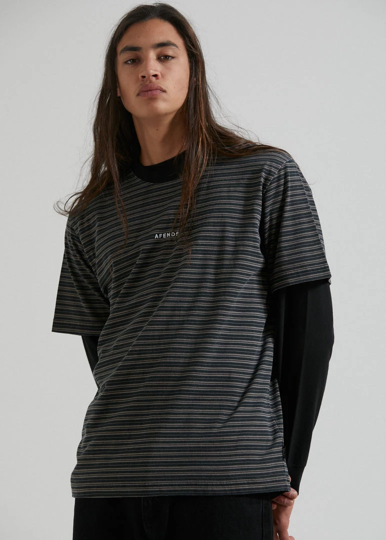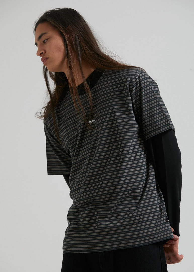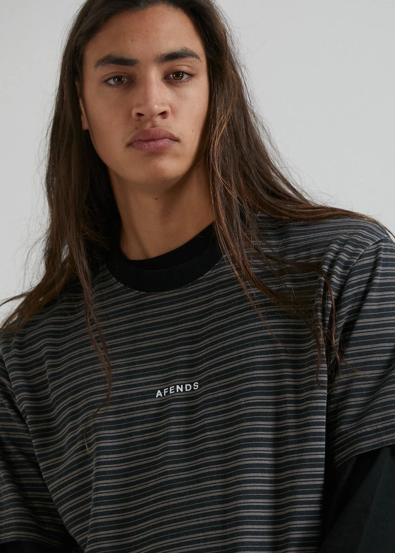 A basic t-shirt made better with stripes. This lightweight tee has a soft-hand feel in eco-friendly recycled cotton with contrast stripes. Our retro design offers a relaxed and boxy fit with short sleeves and a crew neck to slot into your everyday lineup.