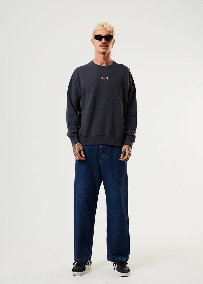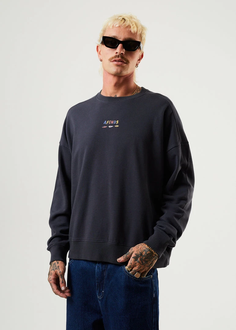 Clothing Afends Mens Wahzoo – Recycled Crew Neck Jumper – Charcoal